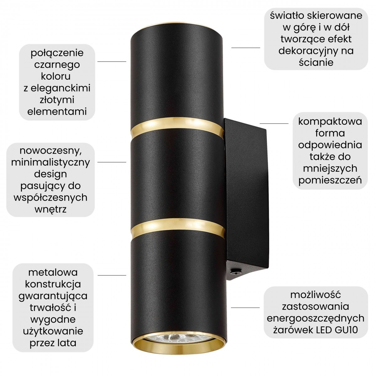 Dwukierunkowy strumień światła, typu góra-dół, to nasze rozwiązanie problemu niedoświetlonych narożników i wąskich wnęk. Zamiast montować kilka mniejszych punktów, jeden czarny kinkiet oświetla przestrzeń pod sobą i powyżej linii montażu. Jest to niezwykle funkcjonalne w miejscach, gdzie nie chcesz stosować dużych lamp sufitowych, a zależy Ci na jasnym i bezpiecznym ciągu komunikacyjnym.