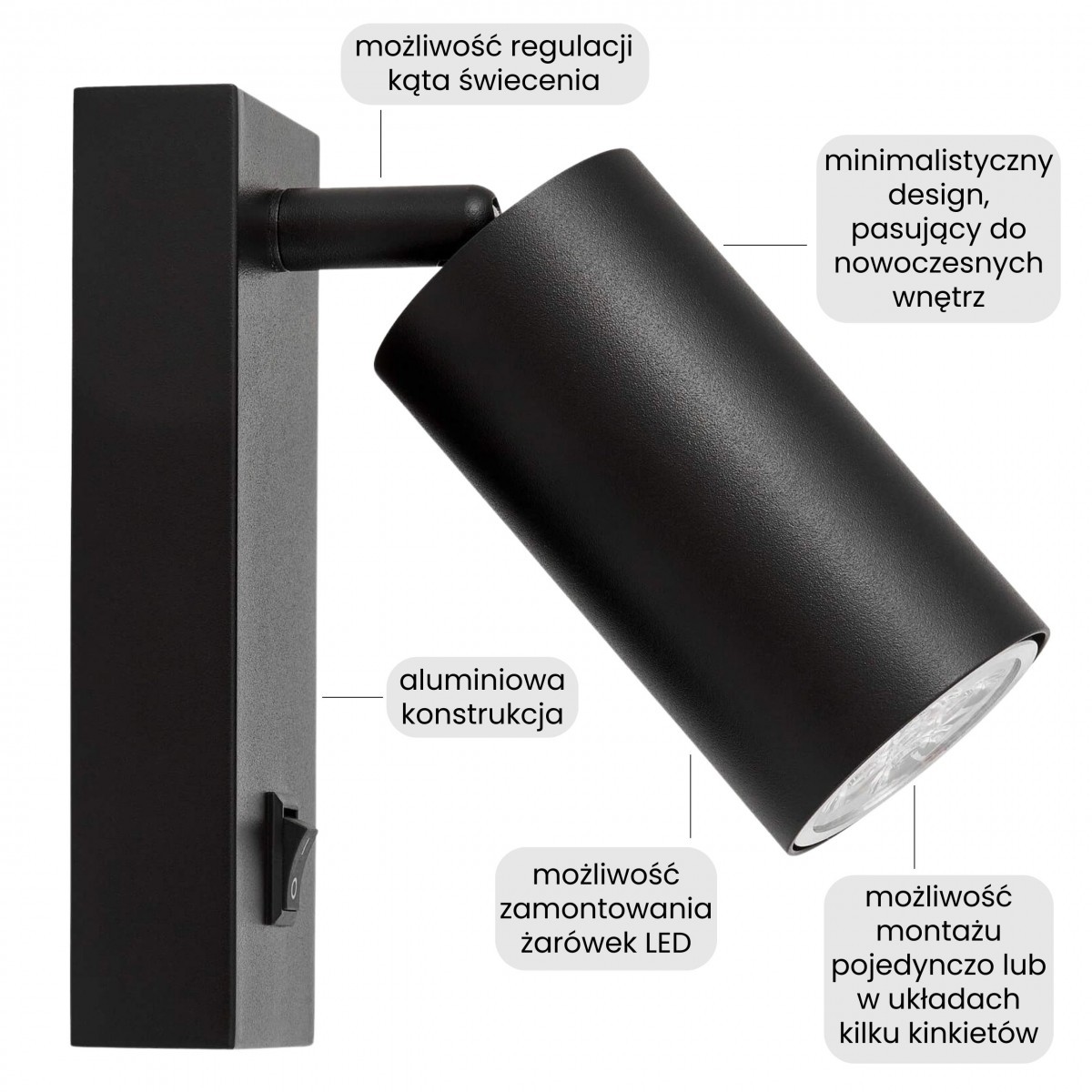 Kinkiet w matowej czerni to strzał w dziesiątkę do przestrzeni wymagających minimalistycznych dodatków, współgrających z nowoczesną aranżacją. To idealna lampa loft, dopełniająca charakterystyczne dla tego stylu cechy, a także model pasujący do wnętrz modernistycznych, industrialnych, minimalistycznych, nowoczesnych, modern classic czy skandynawskich we współczesnej interpretacji.
