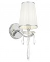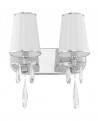 Kryształowa lampa ścienna o designie zestawiającym dekoracyjność stylu glamour z najpiękniejszą klasyką. Pomocnicza oprawa dla sypialni, salonów i korytarzy. Za sprawą dwóch punktów światła maksymalnie rozjaśni zakątki dużych pomieszczeń — narożniki i ściany, pozwalając na wyeksponowanie dzieł sztuki. Wykonana z dwóch abażurów owiniętych białą tkaniną, metalowych uchwytów i chromowanej podsufitki.