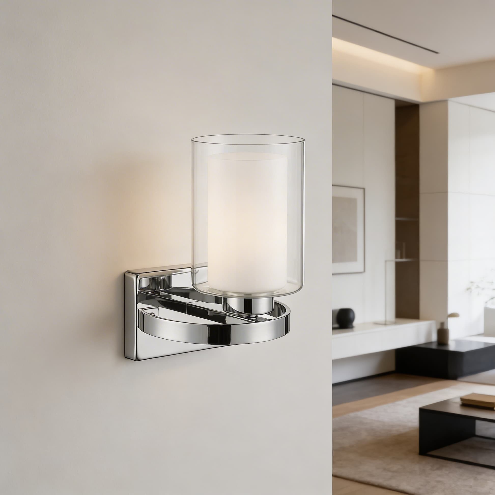 Odrobina klasycznej elegancji połączona z loftową surowością formy zaowocowały powstaniem lampy ściennej SANTINI W1, której niewielka bryła pozwala na doświetlenie gabinetu, salonu i sypialni, a także przedpokoju czy łazienki. Ta wielofunkcyjność wynika również z uniwersalnej kolorystyki chromowanej oprawy oraz powszechnego, pełnego elegancji zestawienia metalu ze szkłem.