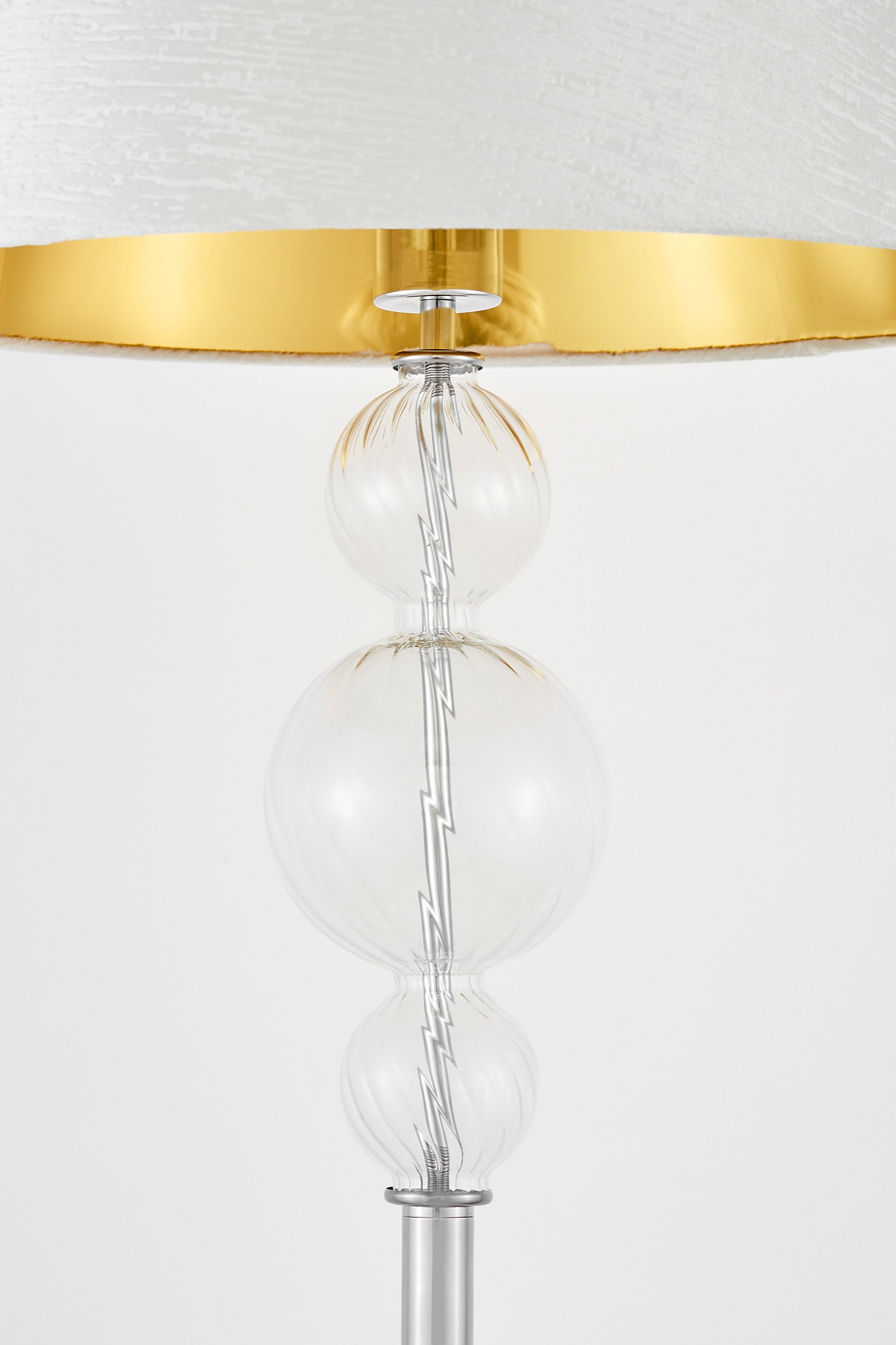 Ozdobna lampa podłogowa Muraneo o współczesnym charakterze sprawdzi się doskonale w aranżacji eleganckich, nowoczesnych przestrzeni. Niepowtarzalny projekt, wykorzystujący klasyczny abażur, prostą ramę oraz szykowne kuliste zdobienia, stwarza w połączeniu z luksusową srebrną kolorystyką i wysoką jakością wykonania szykowny dodatek w pomieszczeniach. Lampa Muraneo sprawdzi się doskonale w domach, np. w salonie, jak i w przestrzeniach komercyjnych.