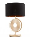 Czerń oprawy oraz złota barwa konstrukcji, a także metal oraz tkanina – to główne przeciwieństwa występujące w projekcie lampy podłogowej MONTERONI. Dodatkiem do wspomnianych kontrastów jest oryginalna, choć prosta ozdoba stelaża, składająca się z połączonych ze sobą okręgów. Nowoczesny styl lampy sprawia, że jest ona znakomitym dodatkiem do jadalni, biur i pokojów dziennych.