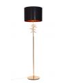 W kolekcji MONTERONI charakterystyczne są kontrasty – minimalizmu połączonego z ciekawym wzornictwem detali oraz kolorystyczne – gdzie łączy się elegancka, głęboka czerń ze złotymi elementami metalowej konstrukcji. Czarny abażur wykonany został z solidnej, nieprzepuszczającej światła tkaniny. Jego szczególną cechą jest złote wnętrze – błyszcząca powłoka nadająca lampie stojącej szczególnego charakteru. Do ciepłego, złotego odcienia wnętrza abażura dopasowany został kolor całego stelaża lampy wraz z jego centralnie występującą ozdobą. O ile konstrukcja lampy podłogowej jest prosta i niewyszukana – stanowią ją okrągła, płaska podstawa oraz prosty drążek, będący bazą dla wszystkich elementów prezentowanego oświetlenia, o tyle dekoracja stanowi bardzo mocny i wymyślny detal, obok którego nie można przejść obojętnie. Jego hipnotyzujące, ułożone w jedną całość obręcze w genialny sposób zdobią i wyróżniają lampę spośród innych modeli lamp stojących.