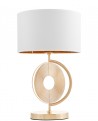 Produkty z serii MONTERONI zachwycają stonowaną, lecz zapadającą w pamięć postacią, która zachwyci niejednego konesera oryginalnych w swoim pięknie dodatków wnętrzarskich. Lampa podłogowa ma spełniać przede wszystkim funkcję doświetlania danego pomieszczenia, pozwalając jego użytkownikom korzystać z niego swobodnie. Dostępna tutaj lampa jest jednocześnie użyteczna i piękna, co pozwala na to, by pełniła także funkcję dekoracyjną. Jej biały, materiałowy abażur, który przełamuje złota, błyszcząca obręcz został usadowiony na równie złotym, metalowym stelażu, zakończonym u dołu okrągłą podstawą. Obok wyróżniającego się abażura, na uwagę zasługuje również mocno zaakcentowana w obrysie konstrukcji lampy ozdoba o hipnotyzującym, nieco orientalnym designie. Liczne obręcze umieszczone jedna w drugiej, a to wszystko podkreślone lśniącą, złotą powłoką metalu, z której wykonana została dekoracja.