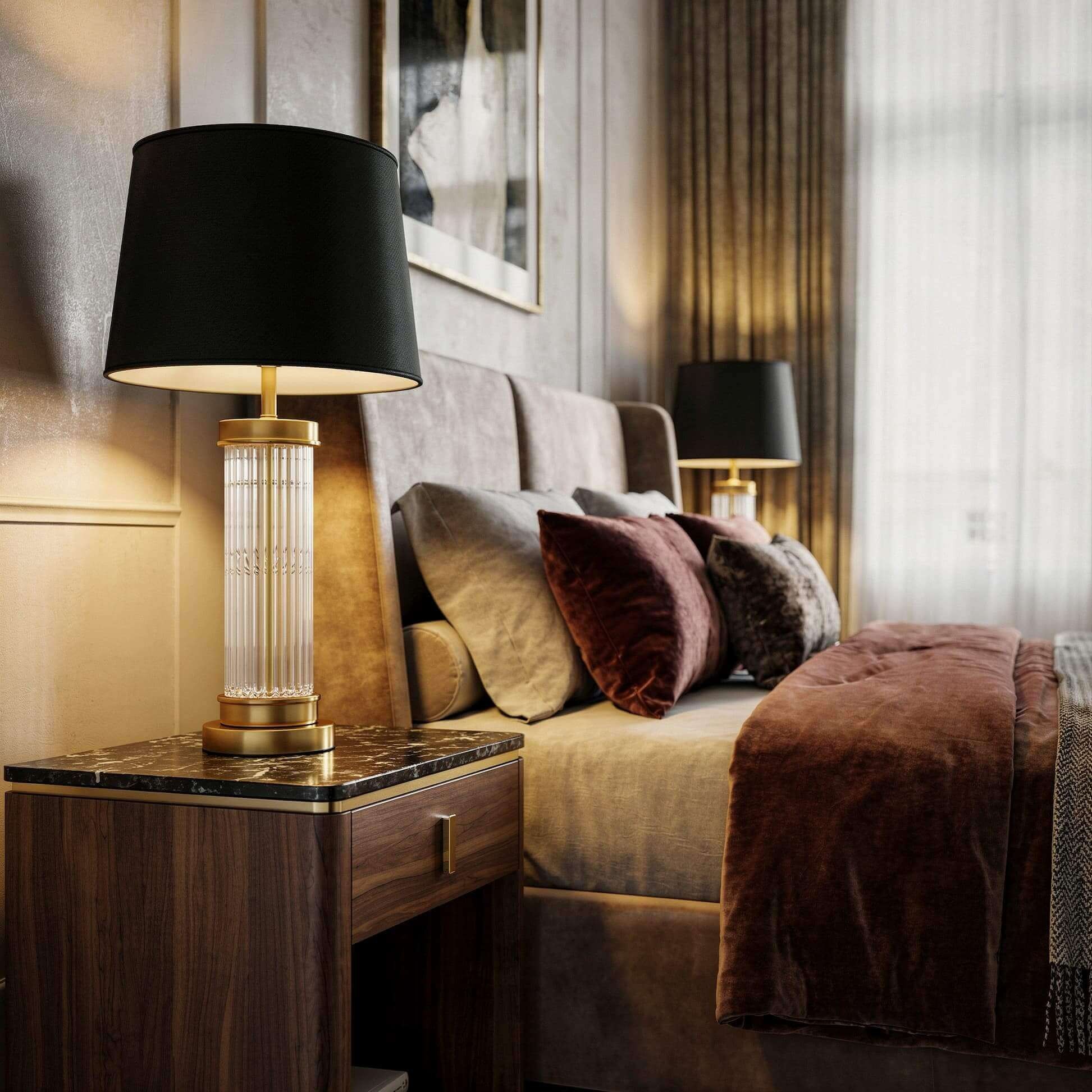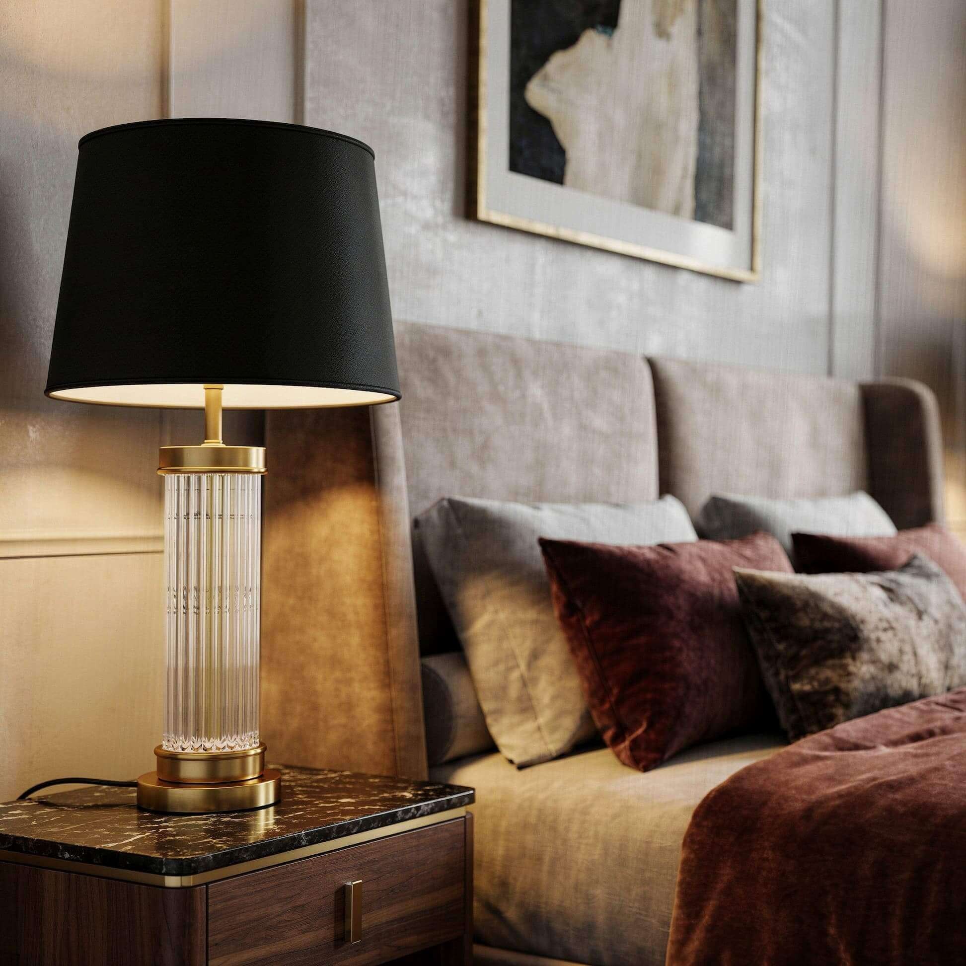 Luksusowa lampa stołowa La Botte to sposób na dodatek aranżacyjny do wnętrza urządzonego wytwornie, z klasą. Subtelne połączenie elementów szklanych i mosiężnych oraz czarnej tkaniny stworzą we wnętrzu ciepły i przyjemny, ale jednocześnie luksusowy i elegancki klimat. Lampa przykuwa spojrzenia i doskonale dopełni stylowy charakter pomieszczeń takich jak salon czy sypialnia, jak również biuro lub restauracja.