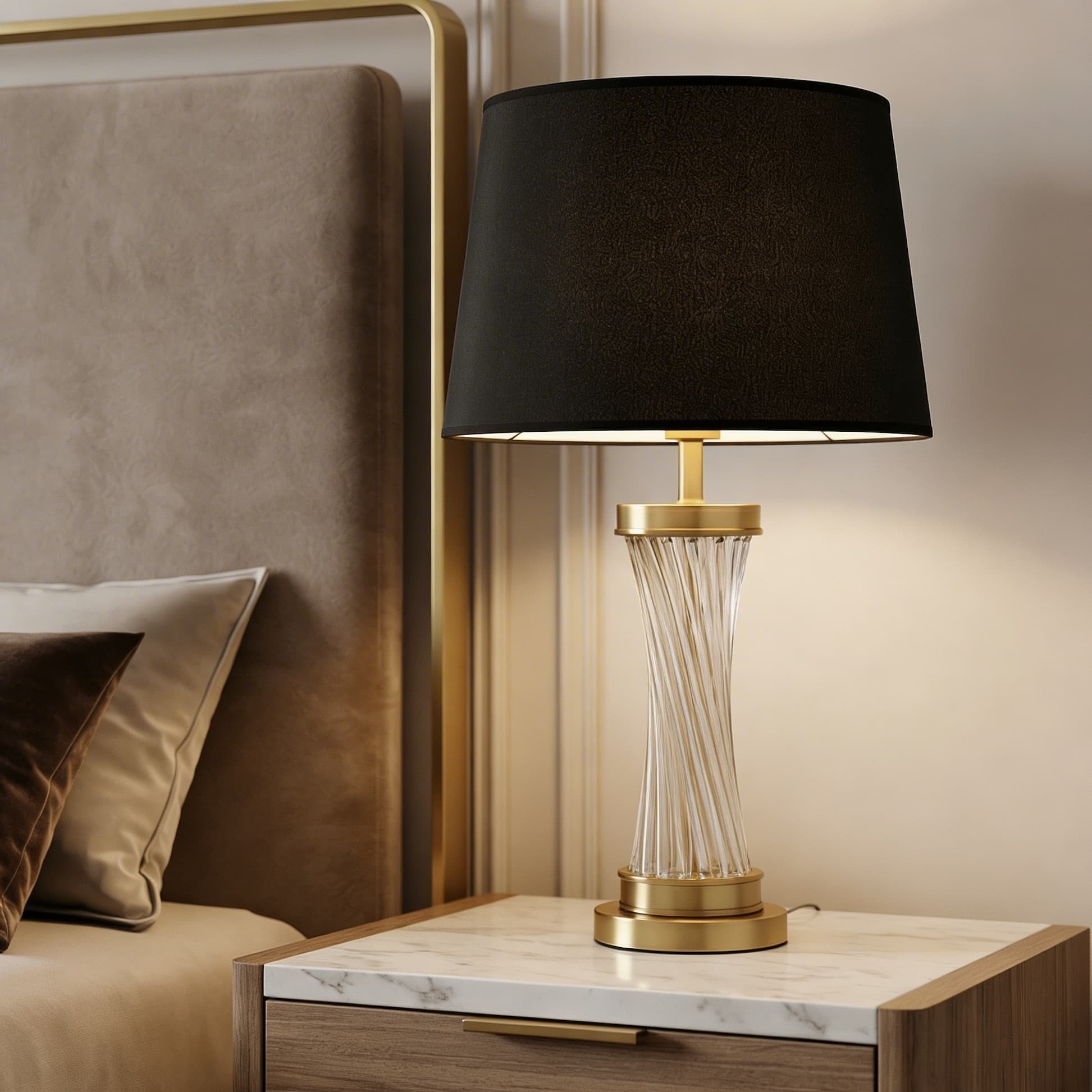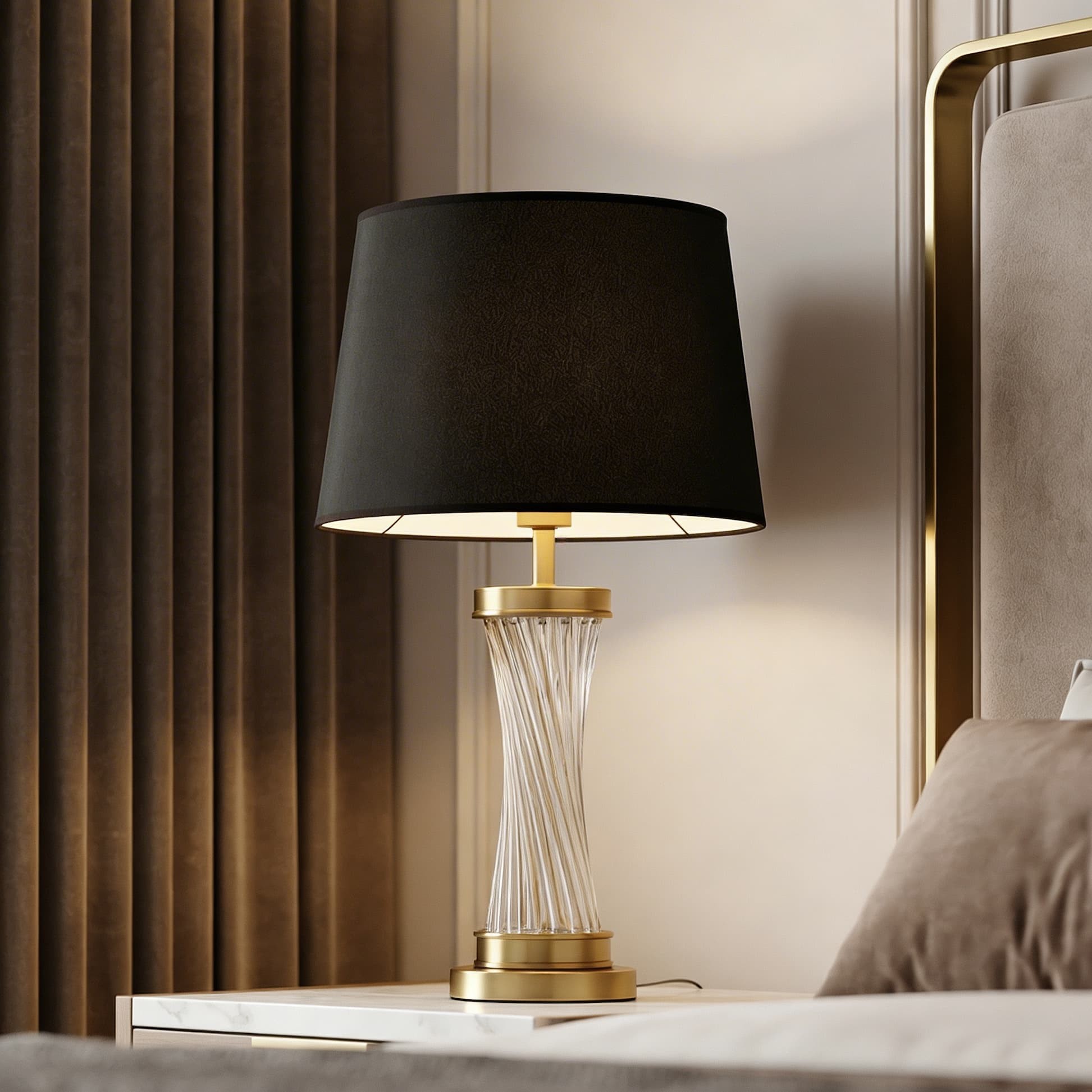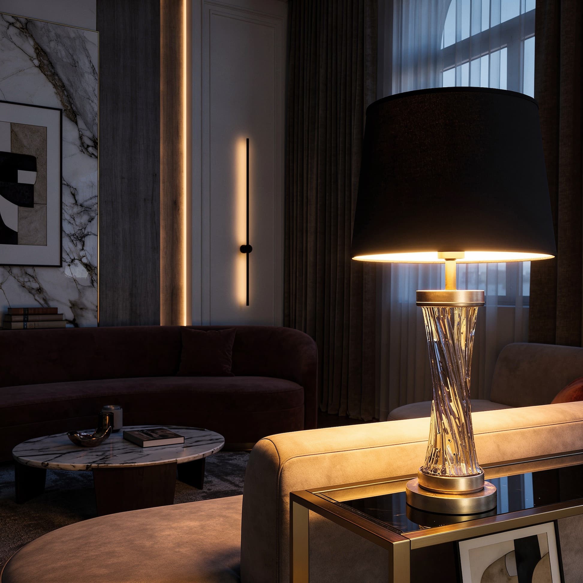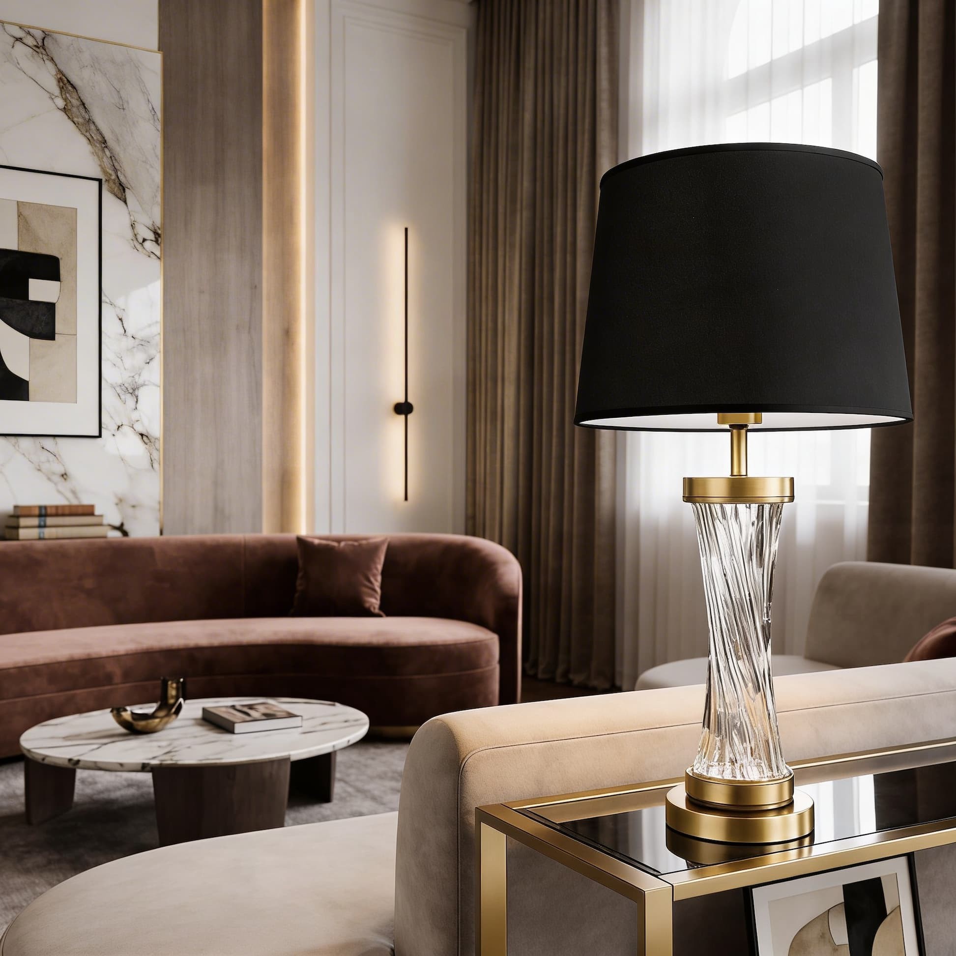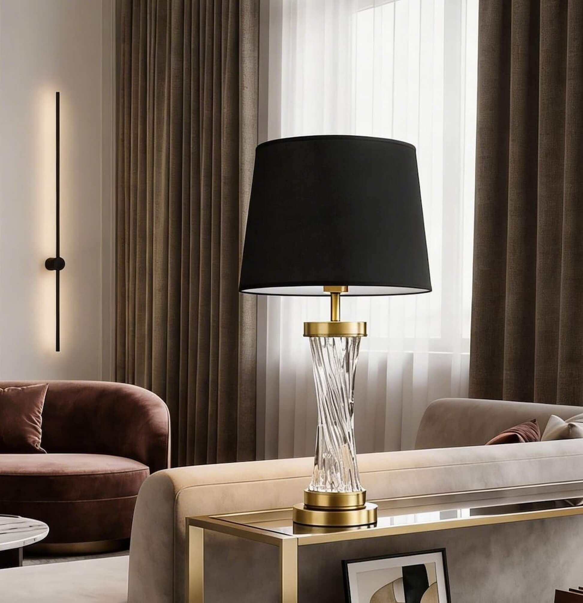 Luksusowa lampa stołowa Villanova to sposób na nadanie pomieszczeniu luksusowego, eleganckiego stylu. Misterne, wysokiej jakości detale oraz szklane elementy i mosiężne dodatki sprawią, że zyskasz w domu, przestrzeni usługowej lub w pracy klasyczną, wyszukaną aranżację wnętrza z klasą. Pojedyncze źródło światła przykryte czarnym kloszem subtelnie oświetli pomieszczenie, dodając mu przytulnego, a zarazem wyszukanego charakteru.