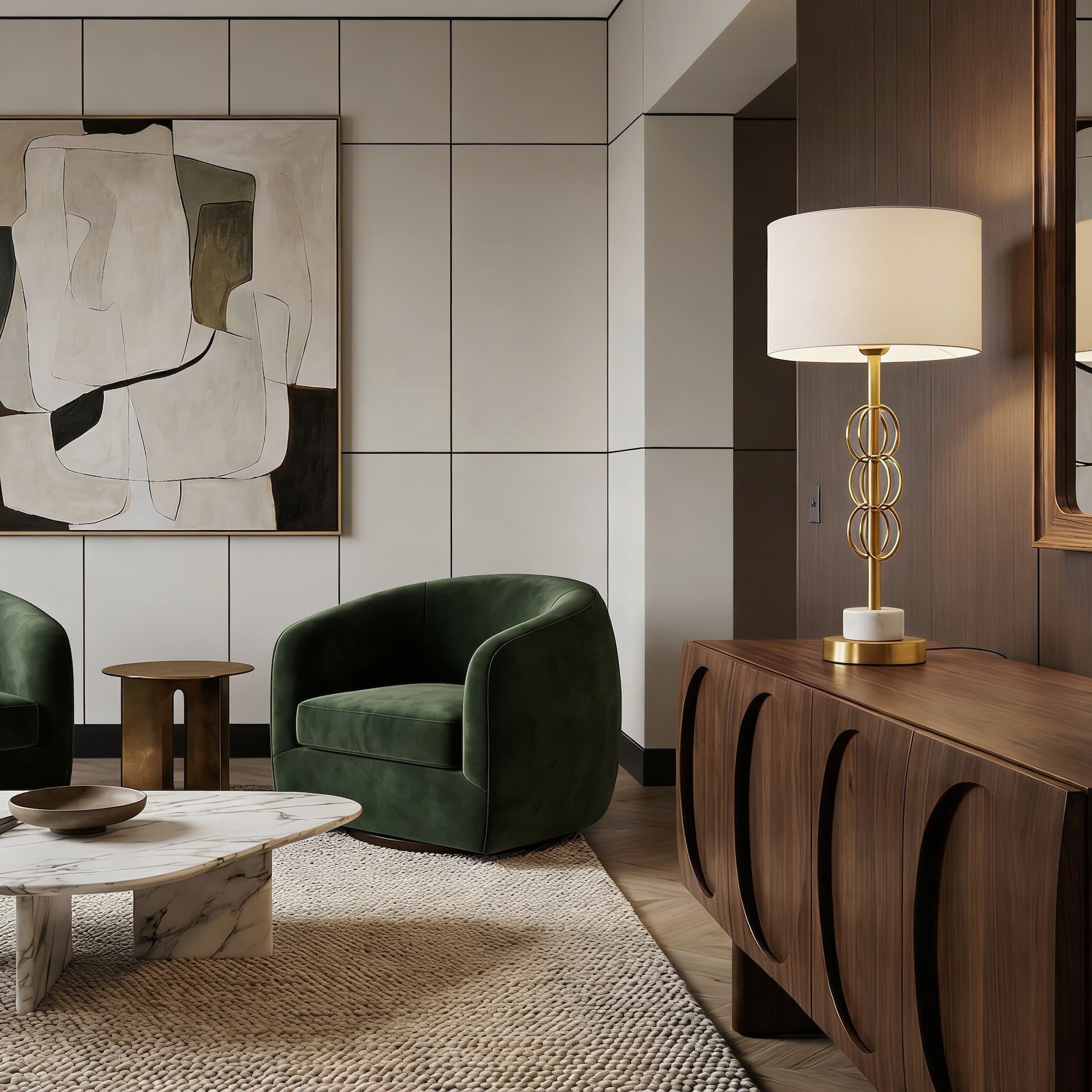 Lampa stołowa Azzaria to dekoracyjny i użytkowy sposób na aranżację wnętrza w eleganckim, wyszukanym stylu. Doskonale sprawdzi się w pomieszczeniach, w których dominuje styl wytworny, np. w sypialni, salonie lub eleganckim punkcie usługowym. Wysoka jakość wykonania i misterne mosiężne elementy, w połączeniu z pięknym białym kloszem oraz marmurową białą podstawą, zapewnią rozświetlenie i powiew elegancji w każdym wnętrzu. Subtelne połączenia kolorystyczne sprawiają, że lampa nocna Azzaria zapewni przytulny klimat i wpasuje się nie tylko w nowoczesne aranżacje wnętrz, ale również bardziej klasyczne z nutką luksusu.