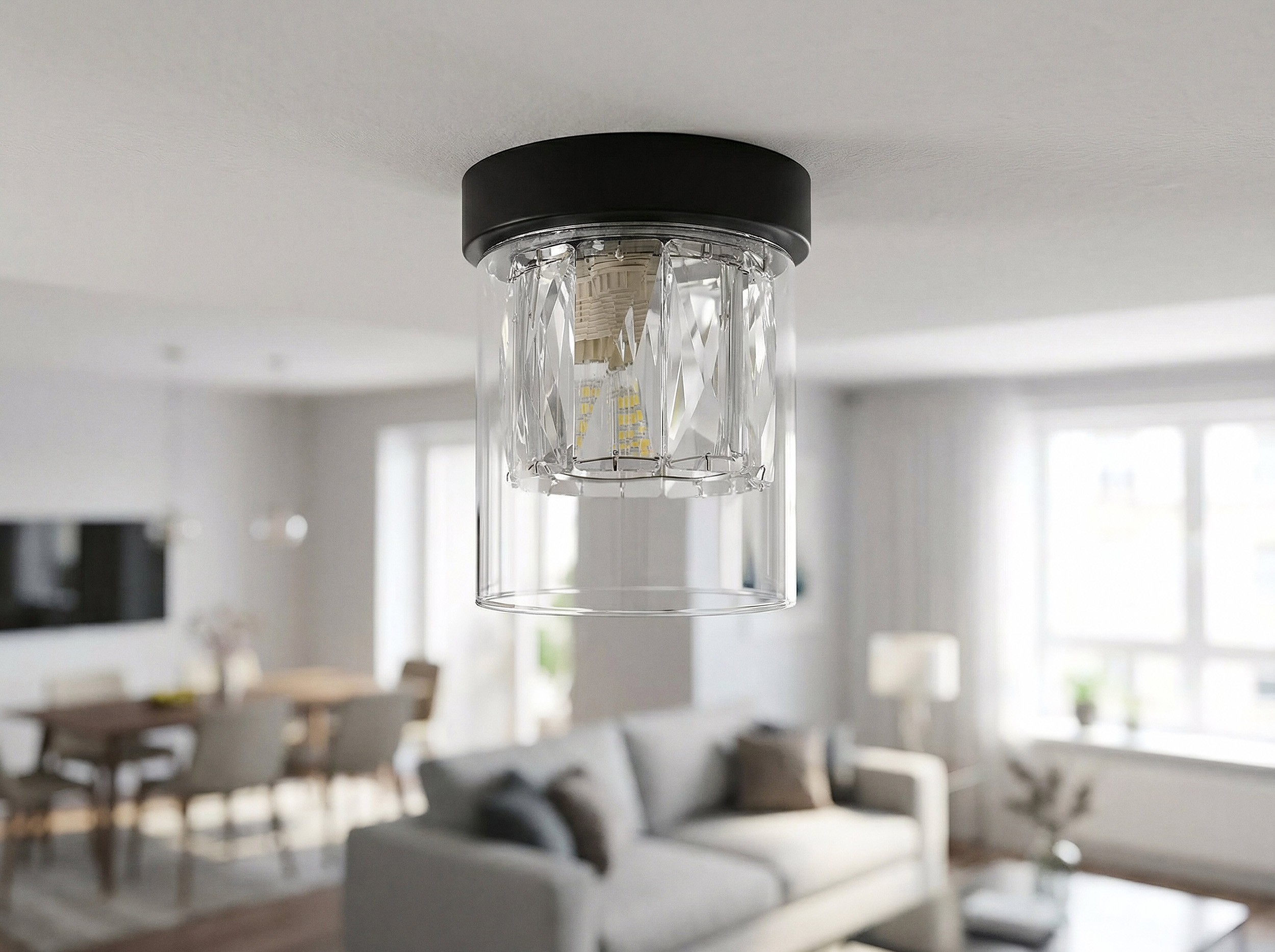 DENI w czerni to nowoczesna lampa sufitowa, która łączy w sobie dwa światy: współczesny design i dekoracyjność delikatnych szlifowanych elementów ukrytych w przezroczystym kloszu. To model doskonały do wielu aranżacji: z powodu niebanalnego stylu doskonale sprawdzić się jako dopełnienie stylu eklektycznego, nowoczesnego, skandynawskiego, ale też minimalistycznego, a nawet industrialnego. Cylindryczna forma umożliwia równomierne rozchodzenie się światła po pomieszczeniu, zwiększając wygodę i tworząc atmosferę sprzyjającą różnym aktywnościom.