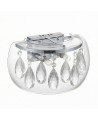 Przezroczysty szklany klosz jest dla kryształków niczym rama dla obrazu. Nie przyćmiewa swojego wnętrza, a jedynie je eksponuje. Staje się subtelnym, niemalże niezauważalnym tłem dla skoncentrowanej grupy foremnych diamentów. Bo to one grają tu główne skrzypce. Przepięknie połyskują, odbijając promienie wydostającego się spośród nich światła (pochodzącego z 4 punktów świetlnych).