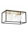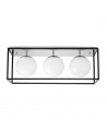 Dwa białe, szklane klosze o średnicy 15 cm równomiernie rozprowadzają światło, zapewniając komfortową jasność i przyjemny nastrój we wnętrzu. Chromowane detale dodają całości elegancji, natomiast kontrastowa, czarna rama podkreśla nowoczesny styl lampy i jej dekoracyjny charakter.