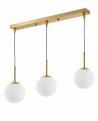 Wisząca lampa Fredica mosiężna to połączenie klasycznego stylu glamour z modernistycznym, minimalistycznym designem. Delikatne mosiężne elementy oraz trzy białe, szklane klosze tworzą razem wytworny i jednocześnie nowoczesny dodatek do aranżacji wnętrza, który sprawdzi się w elegancko urządzonych pomieszczeniach. Trzy źródła światła oraz regulowana wysokość sprawiają, że lampa sprawdzi się również w sporych wnętrzach. Lampa wisząca Fredica zapewni nutkę luksusu i wytworności w pomieszczeniach takich jak jadalnia, salon, kuchnia czy gabinet.