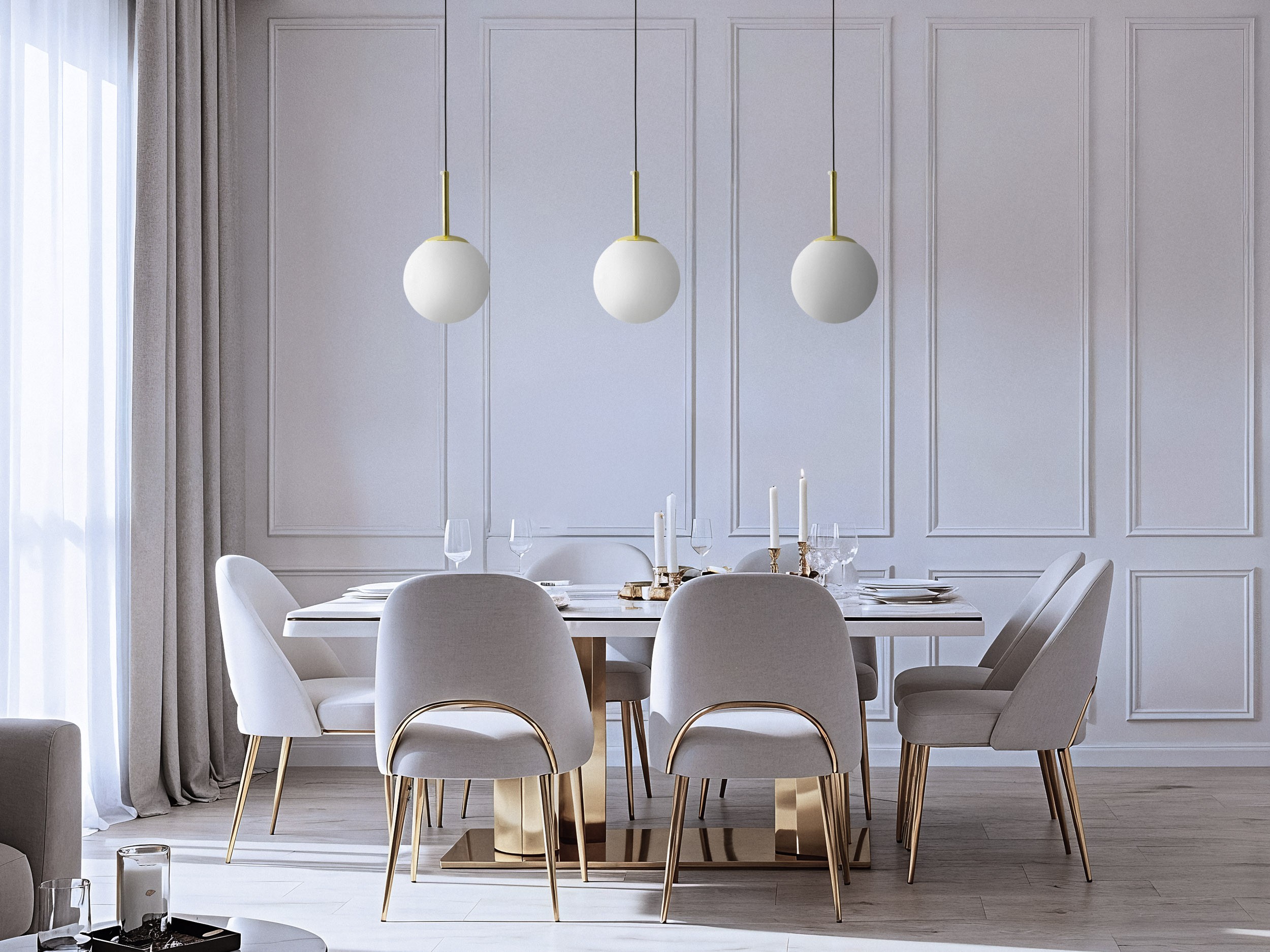 Kolekcja FREDICA reprezentuje dwa różne style – minimalistyczną nowoczesność dążącą do ograniczenia formy i zdobności do minimum, przy jednoczesnej optymalizacji funkcjonalności i ciekawego designu oraz nurtu glamour, który chce olśniewać, zachwycać, wabić przepychem. Spotykają się one w tym modelu w idealnym punkcie – widoczna jest powściągliwość dekoracji, ograniczenie elementów lampy, ale nietrudno zauważyć wyjątkowy, ekskluzywny czar, jakim lampa wisząca obdarza pomieszczenie, w którym się znajduje. Składa się z niewielu elementów – klosza-kuli, wykonanego z matowego, mlecznobiałego szkła, do którego przymocowano płaską, okrągłą blaszkę, tworzącą wraz z cienką rurką uchwyt lampy. Ogniwem łączącym dół lampy z podsufitką jest czarny kabel, posiadający regulację długości. Seria lamp Fredica w wielu kolorach, w tym w luksusowym złocie, stonowanym mosiądzu, uniwersalnej czerni, a także wyszukanym chromie.