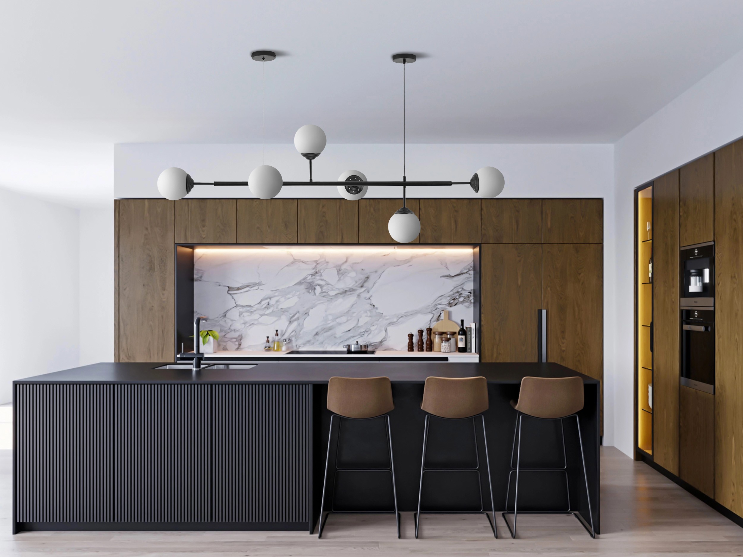 Lampa wykonana starannie, przy montażu trzeba zwrócić uwagę na równomierne ustawienie żarówek bo jest mało stabilna ze względu na zawieszenie na kablu i lince może się przechylać na jedną stronę .