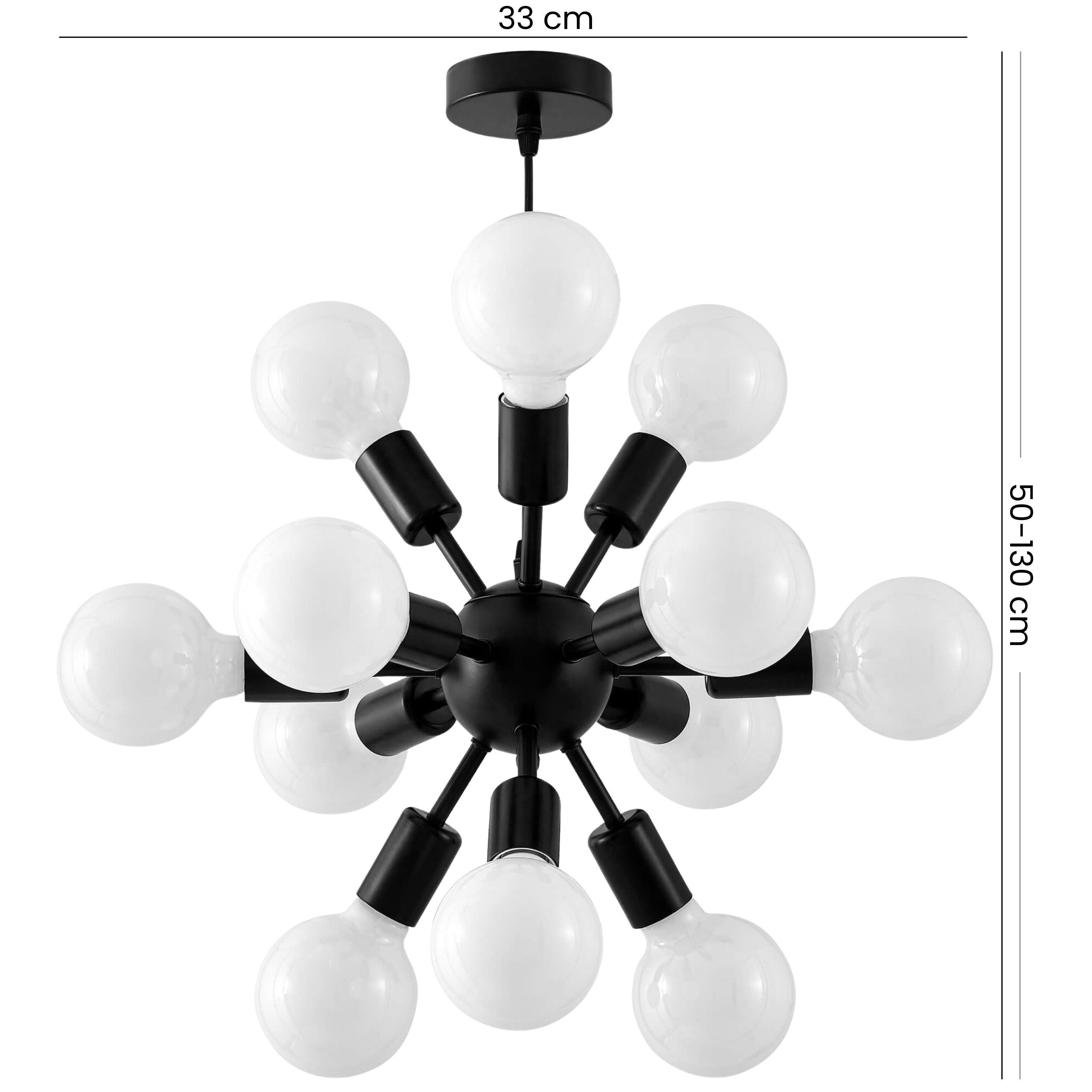 NOVA W12 to czarna lampa wisząca z dwunastoma punktami światła, które zapewniają równomierne oświetlenie przestrzeni, niezależnie od metrażu i zastosowania. Model tworzy przyjemną atmosferę sprzyjającą codziennym aktywnościom, więc dobrze sprawdza się nad stołem w kuchni, w centralnej części wypoczynkowej, jako lampa do sypialni oraz w przestrzeni, w której ważne są wspólne chwile i komfortowe oświetlenie.