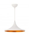 Prezentowana lampa wisząca to jedna z ciekawszych wersji loftowego oświetlenia. Dostępna jest w dwóch wersjach kolorystycznych ze złotym środkiem, który dodaje jej niepowtarzalnego uroku. Regulowana wysokość pozwala na swobodne dostosowanie jej do indywidualnych potrzeb, co stanowi świetne udogodnienie. Szczególnie polecana do salonów oraz jadalni urządzonych w stylu industrialnym, bądź miejskim.