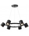 BOLT W6 to czarna lampa wisząca, w której okrągła forma i sześć regulowanych reflektorów układają się w elegancki, nowoczesny kształt. Układ reflektorów pozwala skierować światło w różne strony, dzięki czemu lampa sprawdza się zarówno w centrum salonu, jak i nad stołem, tworząc przyjemny, wyważony klimat. Model wygląda jak współczesna instalacja świetlna: minimalistyczna, a jednocześnie przyciągającą oko.