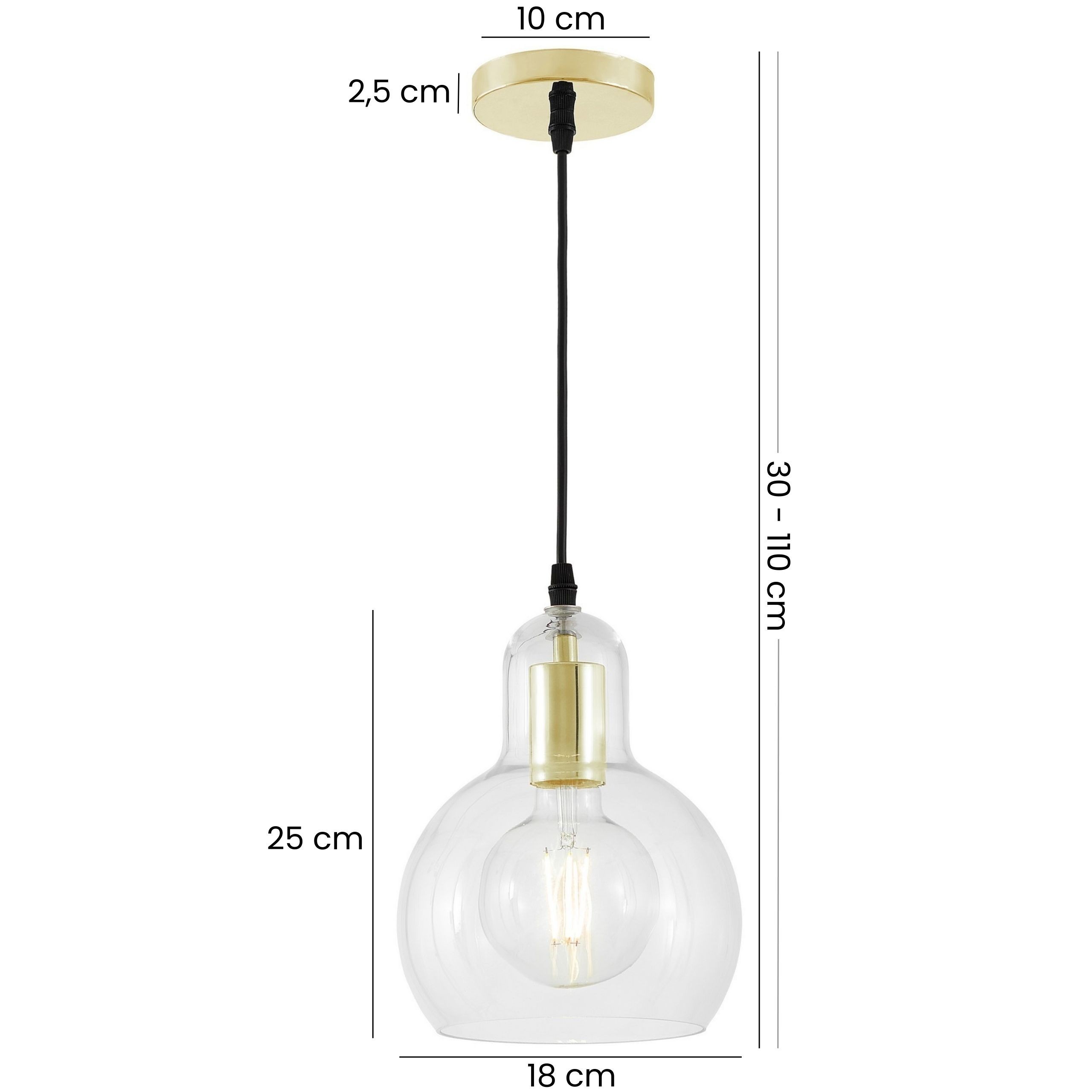MORO 1A w wykończeniu klasyczne złoto to nowoczesna lampa wisząca, która łączy transparentne szkło z eleganckim detalem. Klosz o charakterystycznym kształcie, inspirowanym formą żarówki, pozostawia w pełni widoczne źródło światła, a złota oprawka subtelnie podkreśla współczesny charakter. To propozycja dla wnętrz, w których liczy się zarówno funkcjonalność, jak i stylowy design.