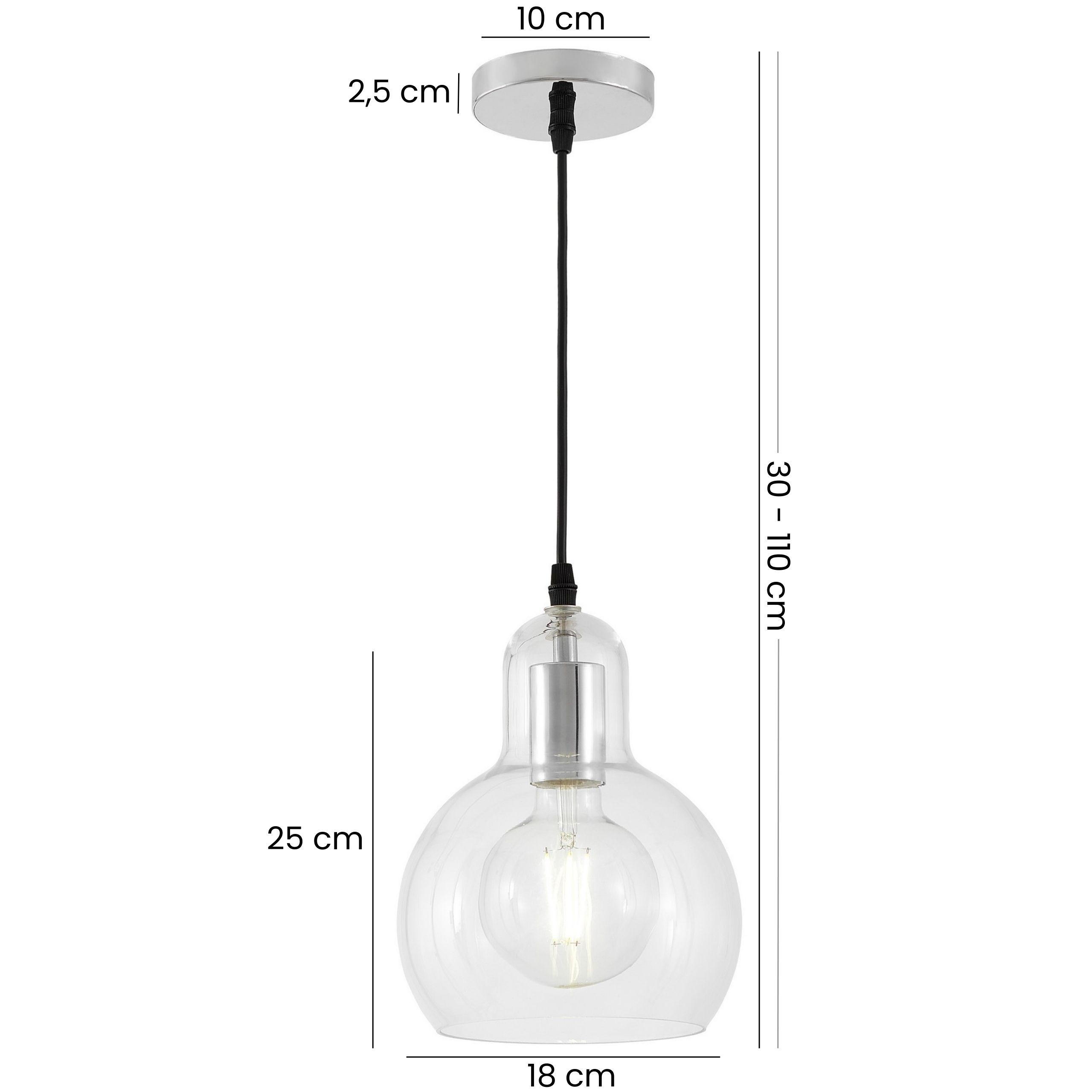 MORO 1A to chromowana lampa wisząca w nowoczesnej formie, posiadająca klosz z przezroczystego szkła, który sprawia, że światło nie jest filtrowane przez dodatkowe osłony. Model doskonale sprawdza się tam, gdzie potrzebne jest wyraźne oświetlenie robocze lub uzupełniające - jako lampa do kuchni, jadalni, przedpokoju, czy wisząc nad stolikiem lub biurkiem.