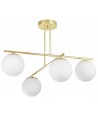 Złota lampa wisząca do sypialni, salonu i kuchni – cztery mleczne kule na złotej, smukłej konstrukcji