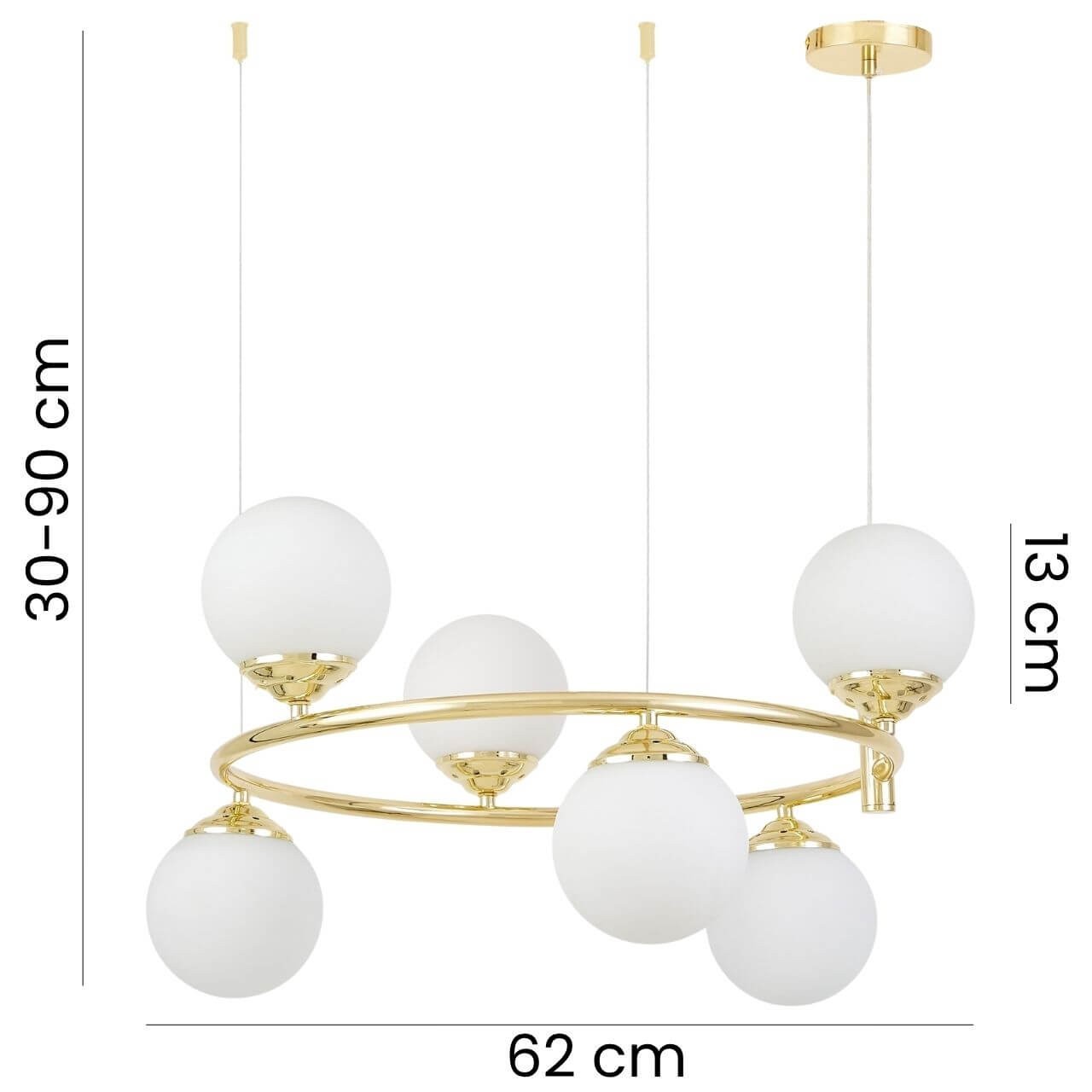 średnica lampy: 62 cm. średnica klosza: 13 cm. wysokość lampy: 30 cm.