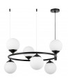 Lampa wisząca w czarnej oprawie z pięcioma kulistymi kloszami to model, który natychmiast przyciąga uwagę dzięki formie opartej na pierścieniu. Smukła konstrukcja zaakcentowana bielą kul tworzy nowoczesny efekt, a klasyczna czerń dodaje surowej elegancji. To lampa, która łączy dekoracyjny charakter z codzienną funkcjonalnością.