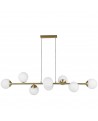 FINO W8 w wykończeniu szczotkowanego złota to najlepszy dowód na to, że lampa może przykuwać uwagę bez zbędnej krzykliwości. Osiem kulistych kloszy z mlecznego szkła zostało osadzonych na ramionach w eleganckim odcieniu złota - detal subtelny, ale szykowny.