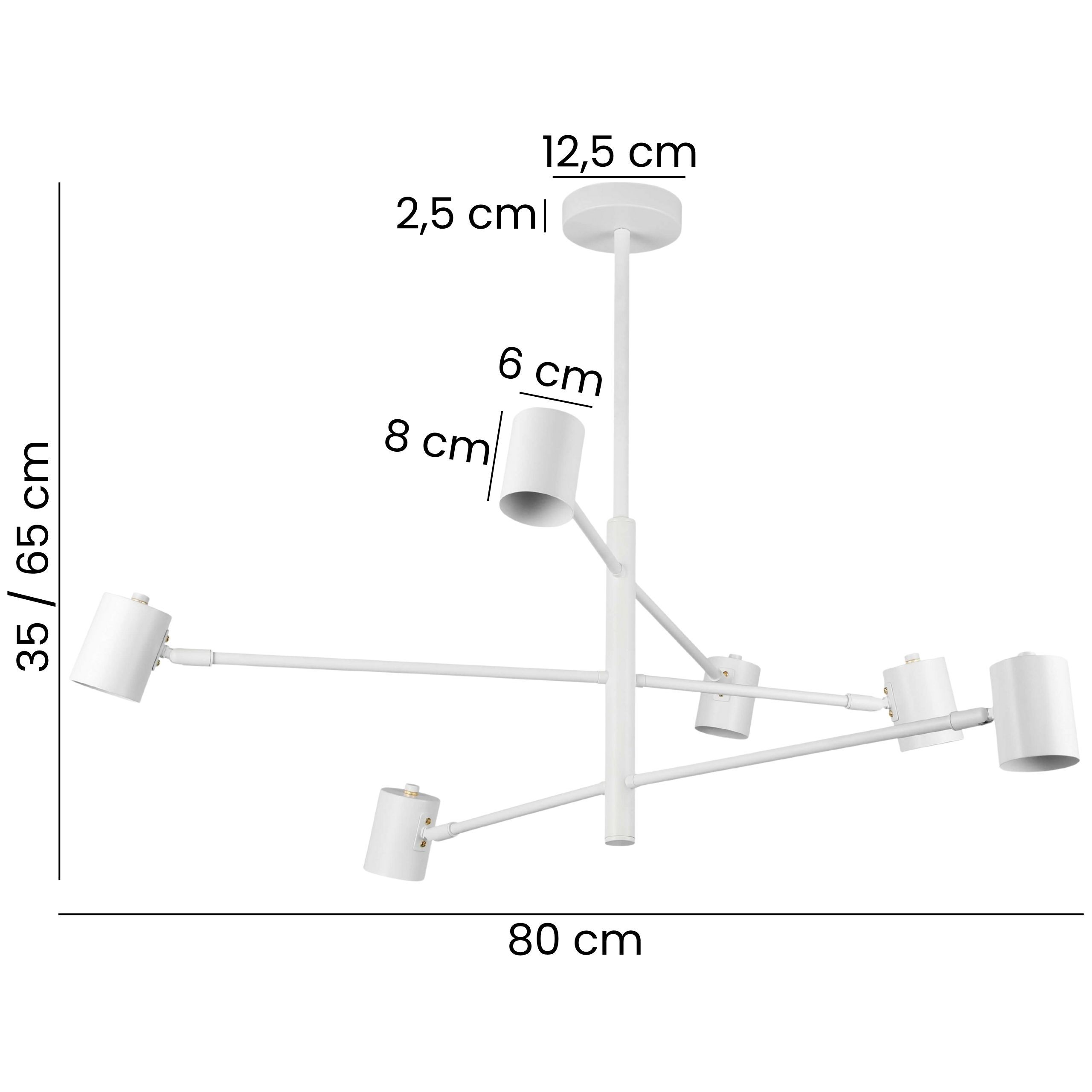Biała lampa wisząca DORA W6 to nowoczesny model z sześcioma regulowanymi reflektorami umieszczonymi na smukłych ramionach. Jej kompaktowa, geometryczna konstrukcja pozwala skierować światło dokładnie tam, gdzie jest potrzebne, przy zachowaniu eleganckiej, stonowanej estetyki.