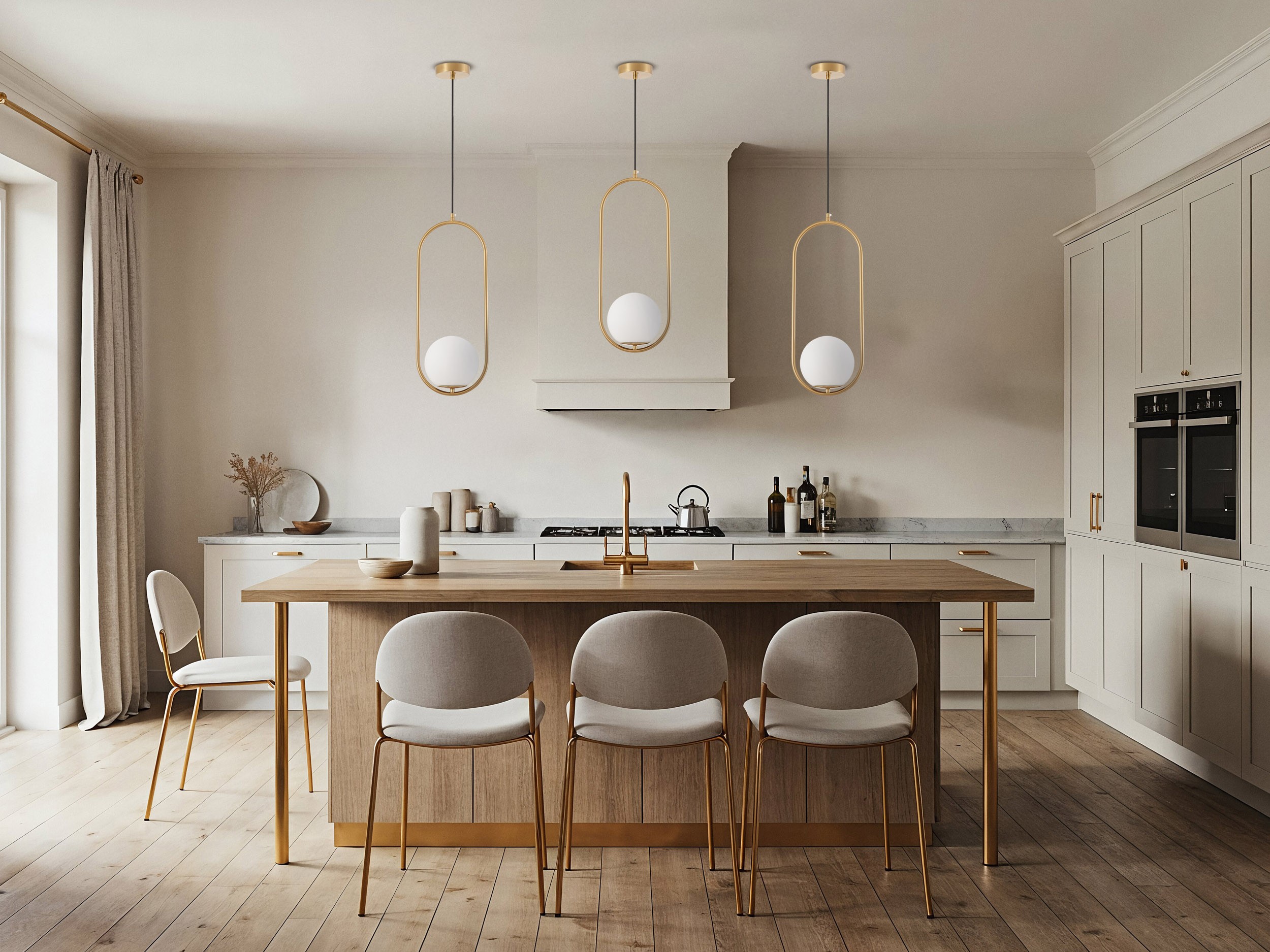 Złota lampa wisząca w szczotkowanym wykończeniu — elegancki detal do współczesnych wnętrz
