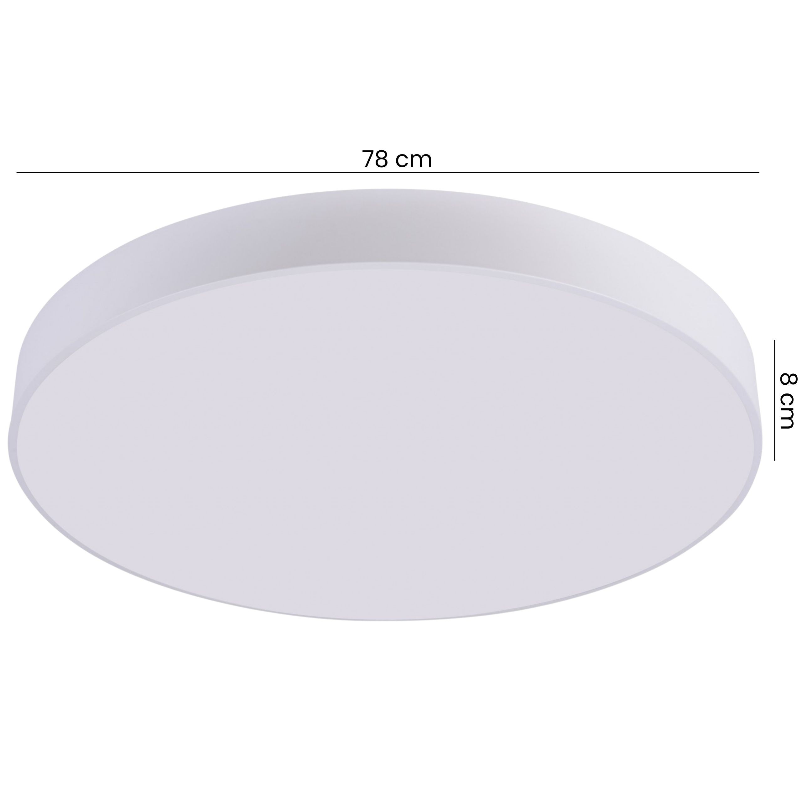 ORBO D78 to biała lampa sufitowa o dużej, okrągłej formie i uniwersalnej konstrukcji odzwierciedlającej najnowsze trendy oświetleniowe. Model przeznaczony jest do wnętrz wymagających wyraźnego i równomiernego oświetlenia, zaaranżowanych w różnych stylach.