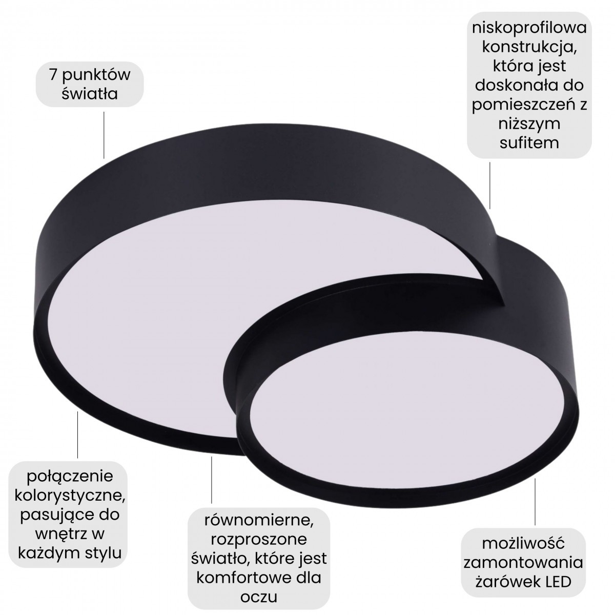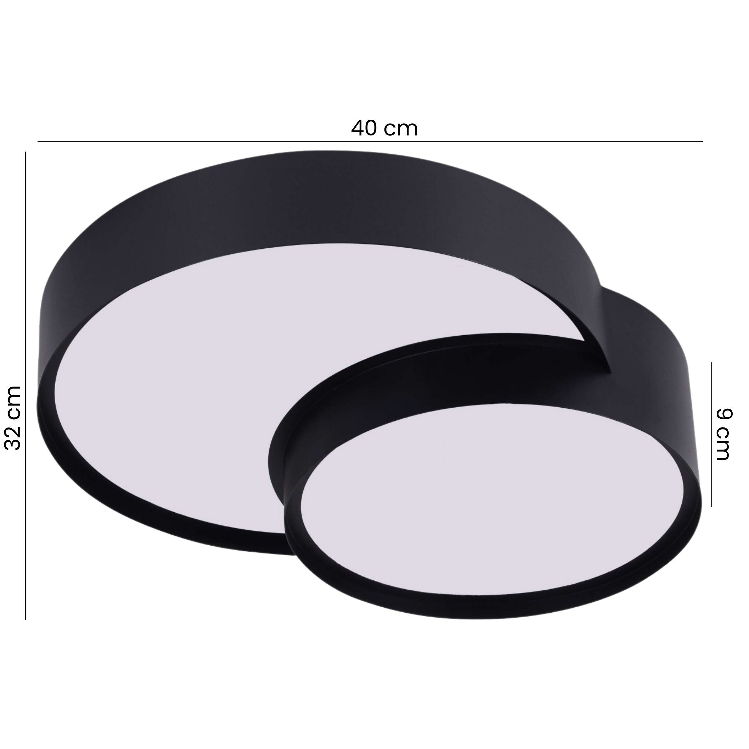 ORBO DUO D40 to czarna lampa sufitowa posiadająca dwa nałożone na siebie okręgi, które tworzą unikalną formę. Głęboka, matowa czerń dodaje całości elegancji o nowoczesnym charakterze, która pasuje do wielu aranżacji. Model zapewnia światło, które nie tylko oświetla przestrzeń, ale też ją definiuje, nadając jej ciekawego wyrazu we współczesnym wydaniu.