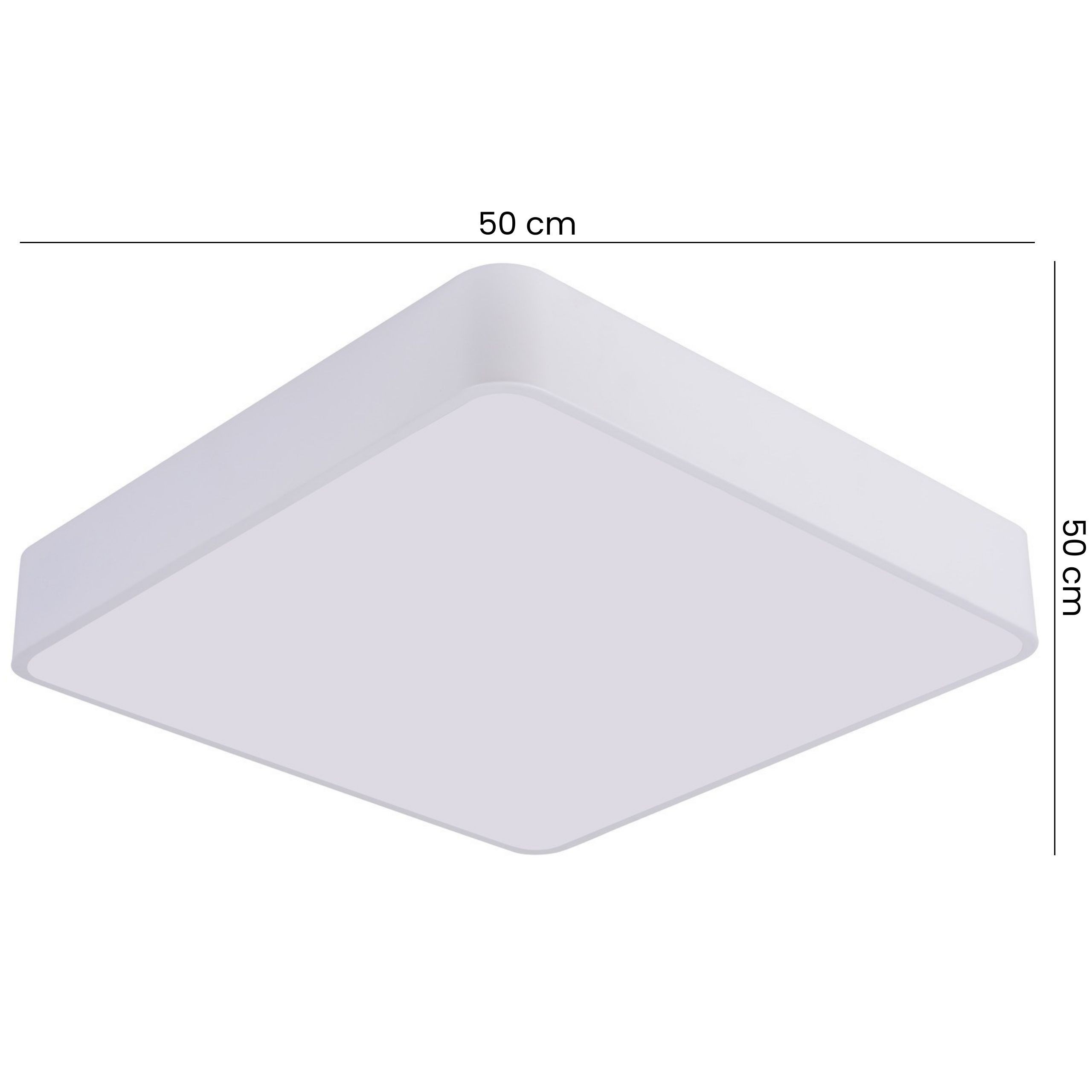 CUBO D50 to biała, nowoczesna lampa sufitowa o kwadratowej formie i wymiarach 50 x 50 cm, cechujący się minimalistycznym designem i jasnym wykończeniem. Jej współczesny charakter sprawia, że model doskonale nadaje się do przestrzeni dziennych zaaranżowanych w różny sposób.