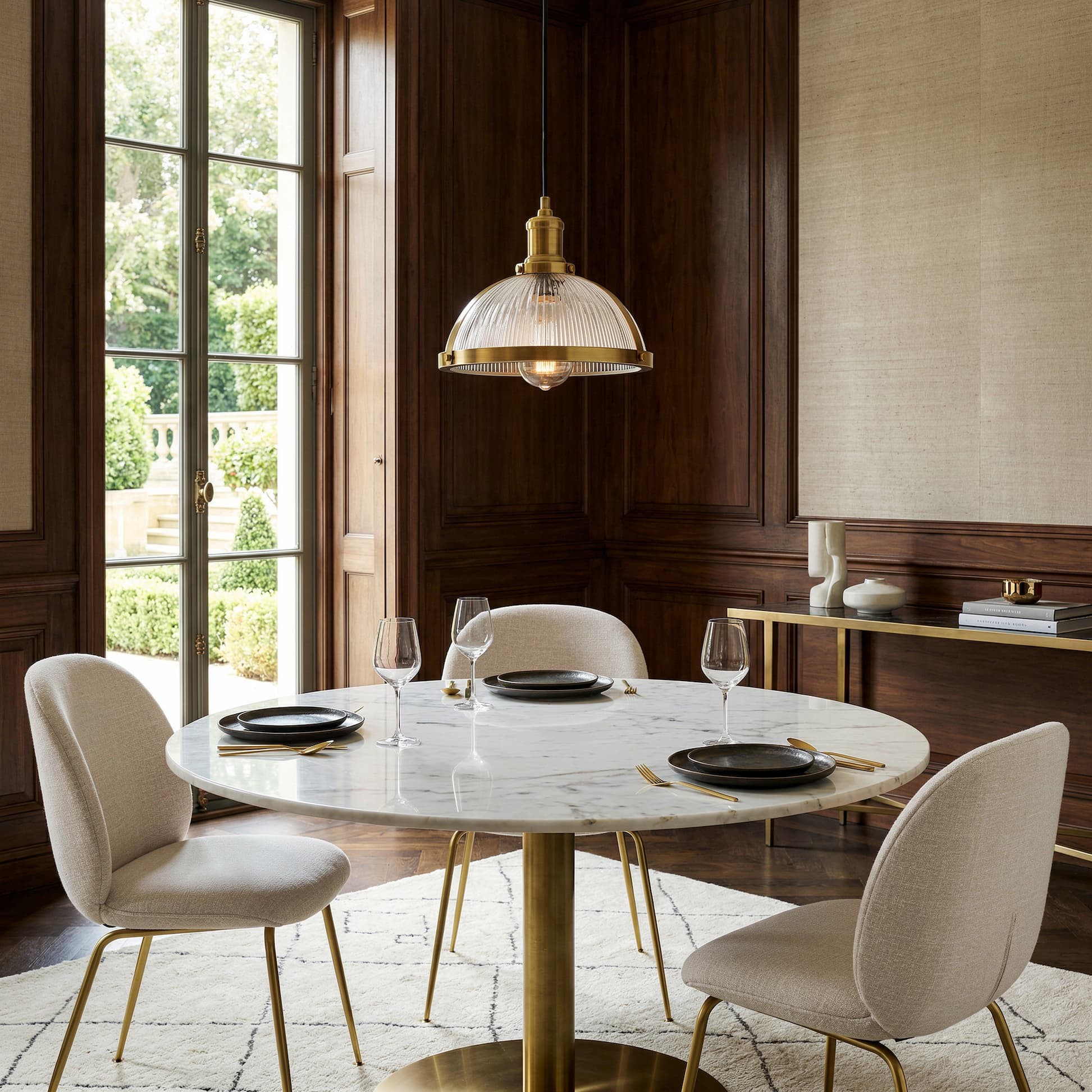 Kolekcją designerskich lamp wiszących BRICO rozwiązujemy problemy właścicieli loftów, kawalerek i wielofunkcyjnych lokali. Duet białego szkła i złotego mosiądzu bez wątpienia jest piękny, ale jednocześnie na tyle uniwersalny, by wyposażyć najróżniejsze pomieszczenia. Nada wnętrzom elegancji rodem ze Śniadanie u Tiffany'ego. Zgrabnie połączy kuchnię z jadalnią po zawieszeniu kilku lamp w jednej linii i umieszczeniu ich bezpośrednio nad stołem. Wysmakowane bogactwo w przystępnej wersji codziennej!