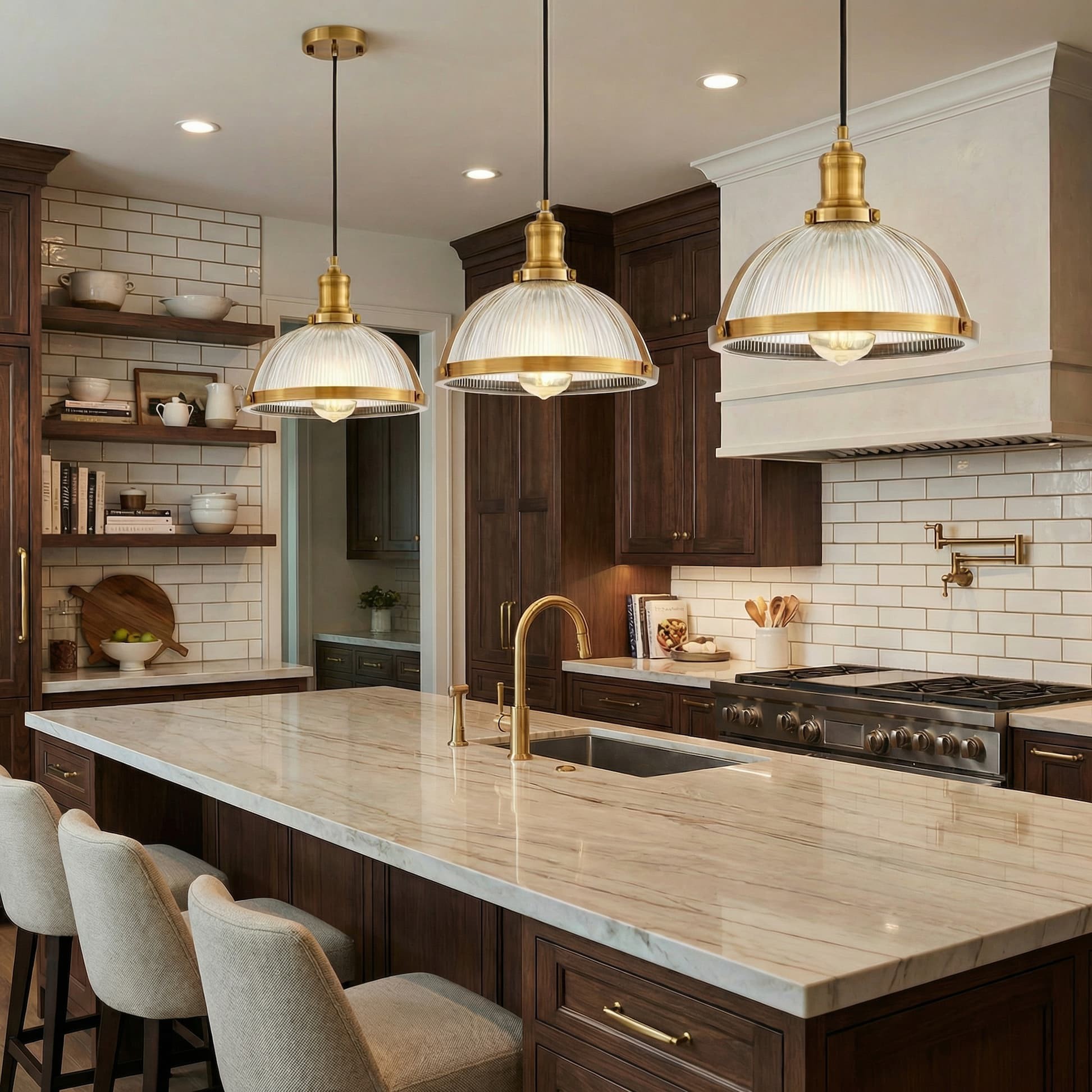 Istny oryginał w naszej kolekcji — niebanalna dekoracja pod postacią klasycznej lampy wiszącej do salonu, kuchni lub jadalni. Prosta recepta na efektowne i efektywne aranżowanie jednopomieszczeniowych wnętrz. Karbowane szkło otaczające klosz perfekcyjnie imituje wygląd ekskluzywnych tkanin, a mosiężne zdobienia otaczają je niczym biżuteria. Czarny regulowany kabel dopełnia designerski wizerunek.