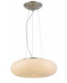 Elegancka estetyka w nietuzinkowym wydaniu — przypominająca najmodniejsze projekty współczesnych projektantów. Unowocześniona alternatywa dla klasycznych żyrandoli, znakomity wybór dla minimalistycznych salonów oraz lokali komercyjnych. Szklany biały klosz zawieszony na przezroczystych cienkich kabelkach, przymocowany do klasycznej srebrnej podsufitki. Piękno ukryte w prostocie.
