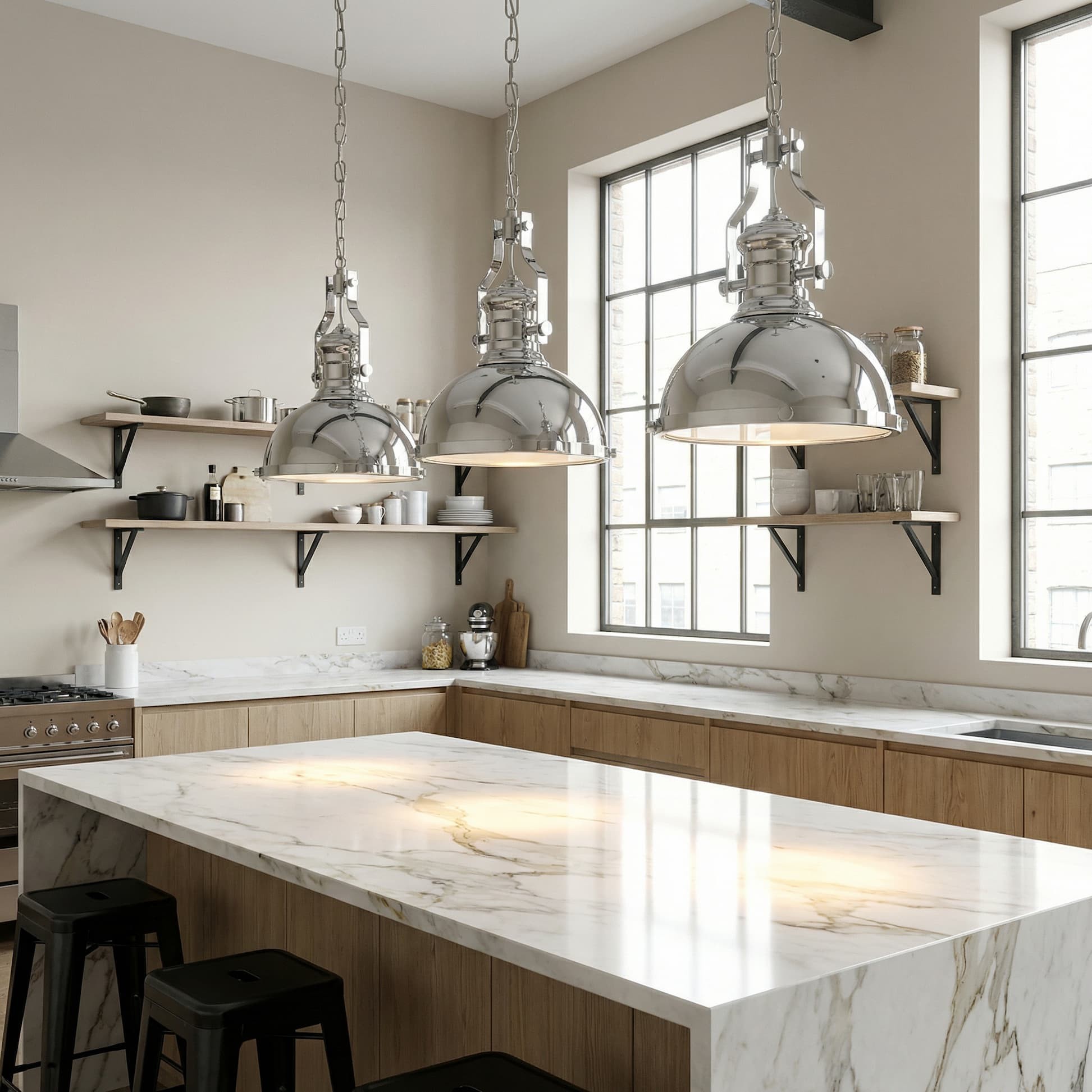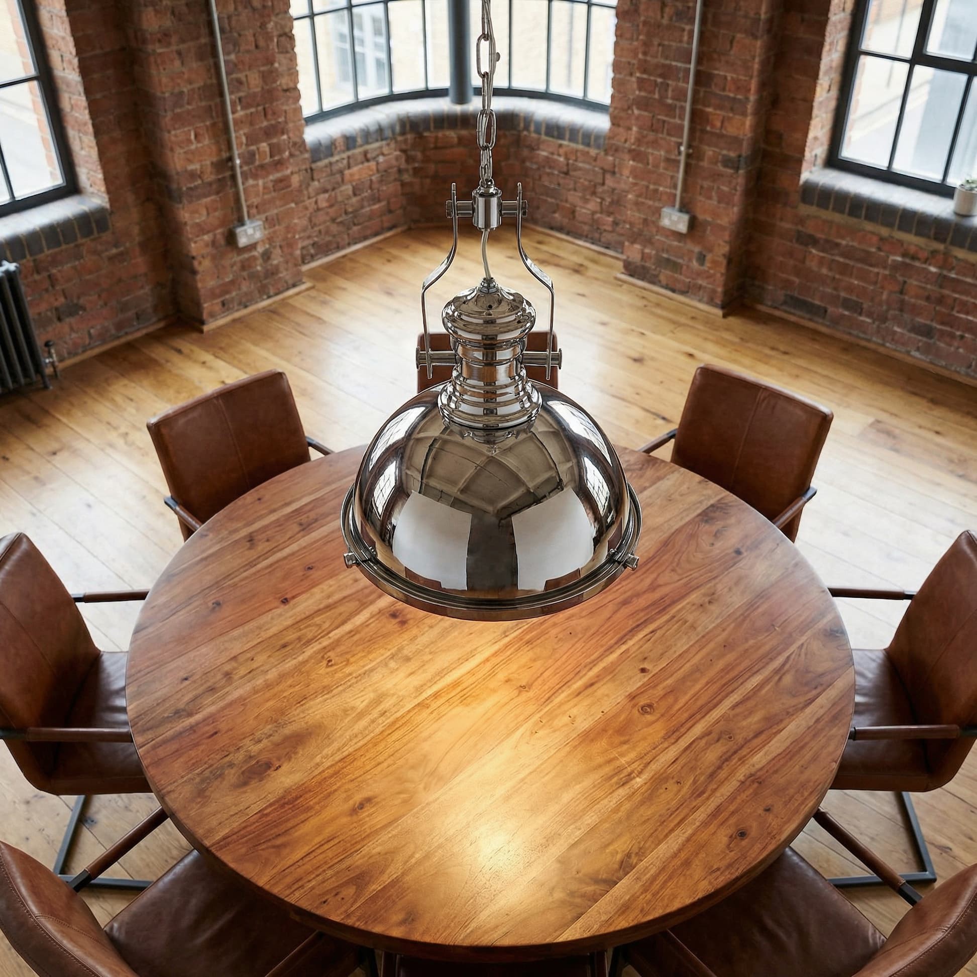 Seria lamp wiszących ETTORE w pełni ukazuje sedno stylistyki industrialnej. Jest odzwierciedleniem stylu loft — kwintesencją bardzo nowoczesnych, niebanalnych form, które za sprawą jednolitego pokrycia nabierają praktycznego uniwersalizmu. Chromowany model wykonany z wysokojakościowego metalu i solidnego szkła stanie się ciekawym dekoracyjnym punktem małych knajpek, klimatycznych pubów i restauracji. Zawieszony niżej niż tradycyjnie, powieszony tuż nad stolikami, zapewni gościom prywatną atmosferę, jednocześnie nie przytłaczając ich swoją prostą formą.