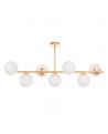 Nowoczesny styl prezentowanego oświetlenia łączy w sobie minimalizm i dekoracyjność. Mimo że te dwie cechy powinny się wykluczać, lampa wisząca Petrica W16 łamie wszelkie stereotypy. Jej luksusowa złota oprawa podtrzymuje aż szesnaście szklanych kloszy, które majestatycznie ozdobią wnętrze niejednego salonu, jadalni, a nawet holu.