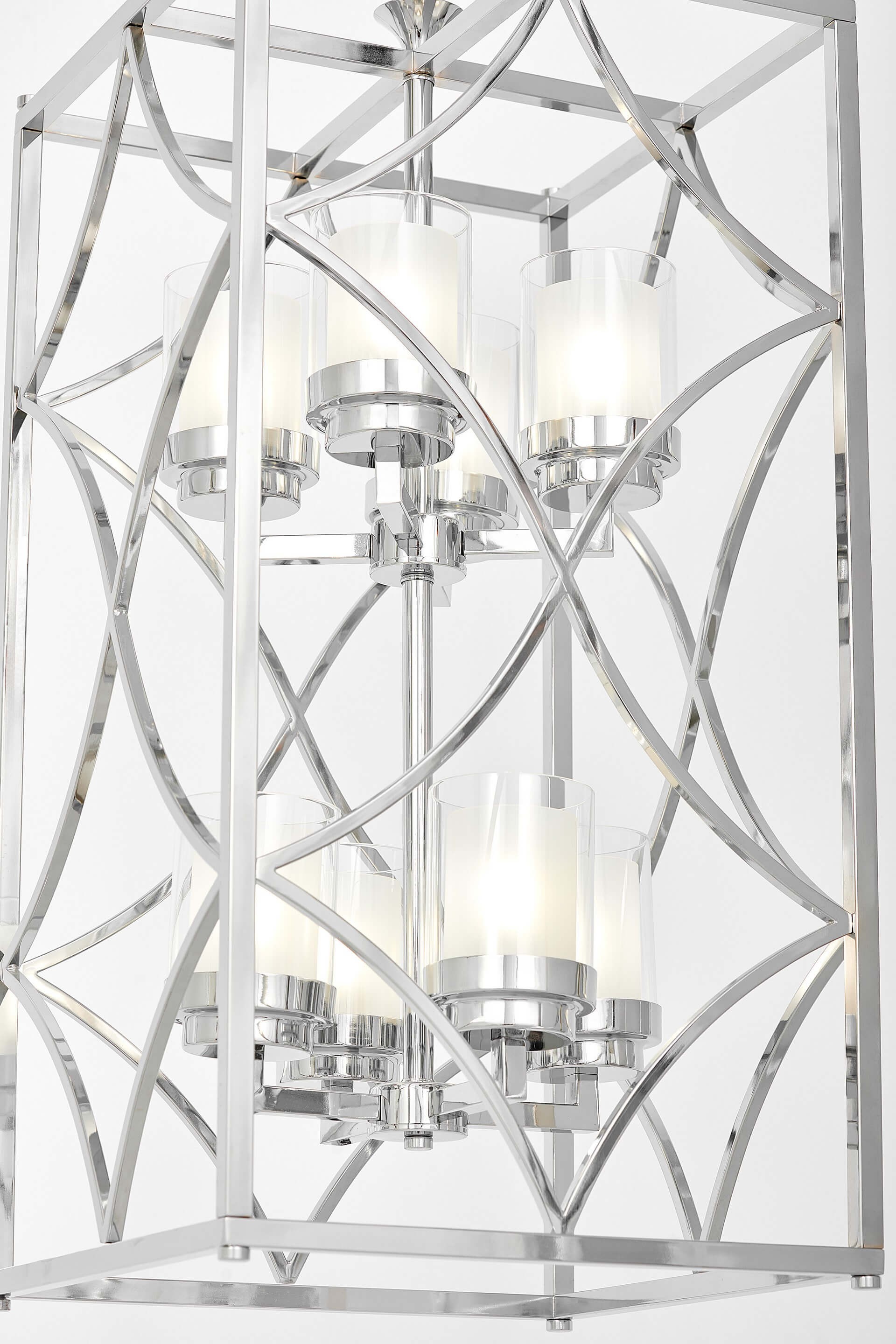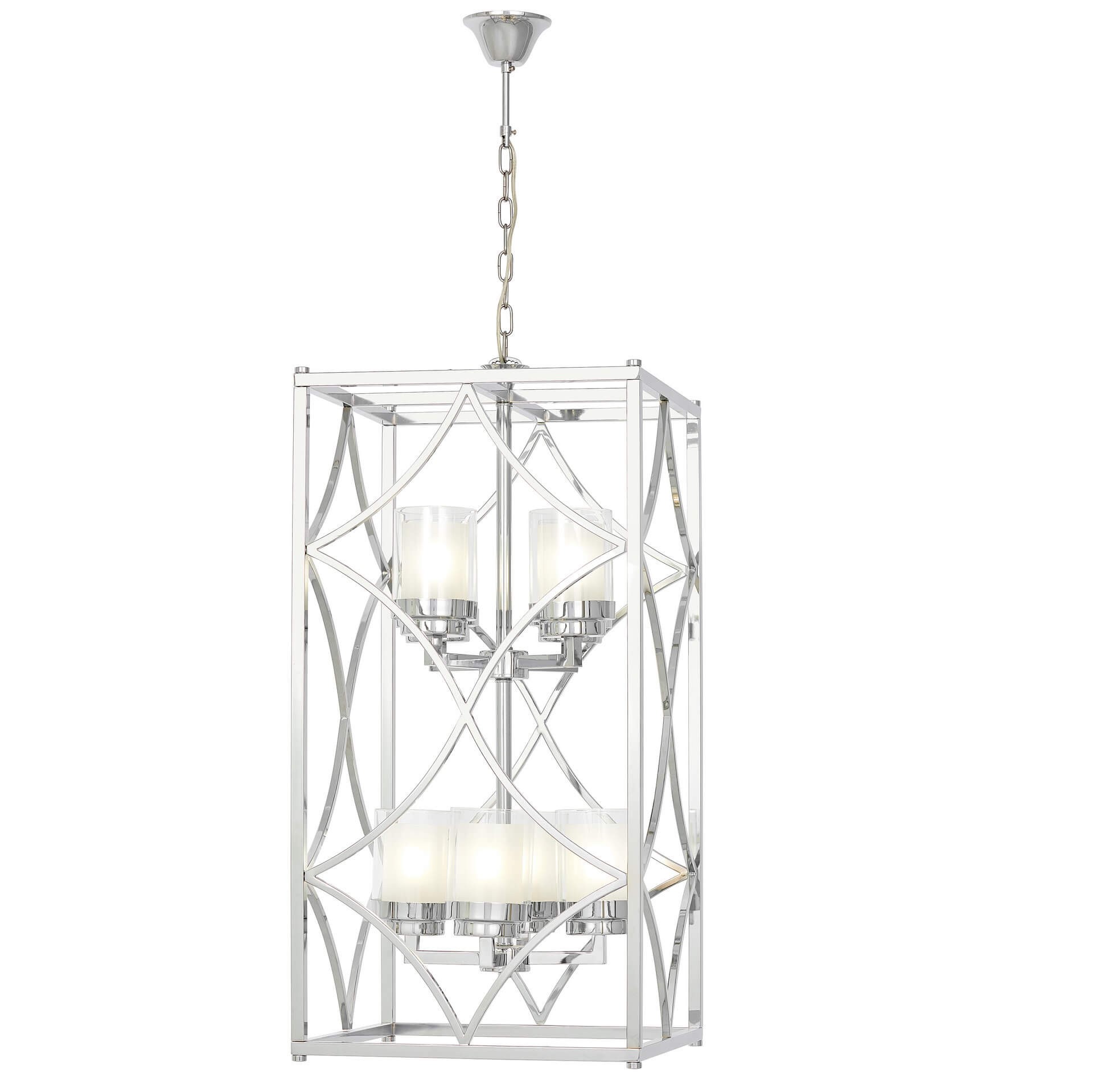 Lampa wisząca QUADRATO DUO to wersja oświetlenia dla wszystkich tych, który lubują się w klasycznych dodatkach stylizowanych na typowo industrialne aranżacje, przede wszystkim we wnętrzach salonów i gabinetów, a nawet monumentalnych klatek schodowych. Chromowana oprawa nada pomieszczeniom blasku, zaś osiem kloszy pozwoli na mocne doświetlenie przestrzeni.