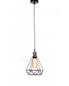 Czarna lampa wisząca loft, którą nie da się jednoznacznie określić. Konstrukcja metalowej kratki imituje w niej kształt odwróconego diamentu. Pozostawiona w jej wnętrzu, niczym nieokryta żarówka nie jest wyłącznie praktycznym elementem, a staje się niezależną dekoracją o wysokim sznycie. Propozycja dla niebanalnych klientów i niebanalnych wnętrz.