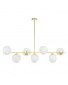 Reprezentacyjny wygląd lampy wiszącej FREDICA jest zasługą niecodziennego kształtu, będącego wynikiem projektu w duchu nowoczesnym, ale także pięknej, mosiężnej oprawy oraz umieszczeniu na niewielkim obszarze siedmiu szklanych kloszy. Takie solidne źródło światła sprawdzi się idealnie w każdej kuchni, jadalni oraz niejednej restauracji.