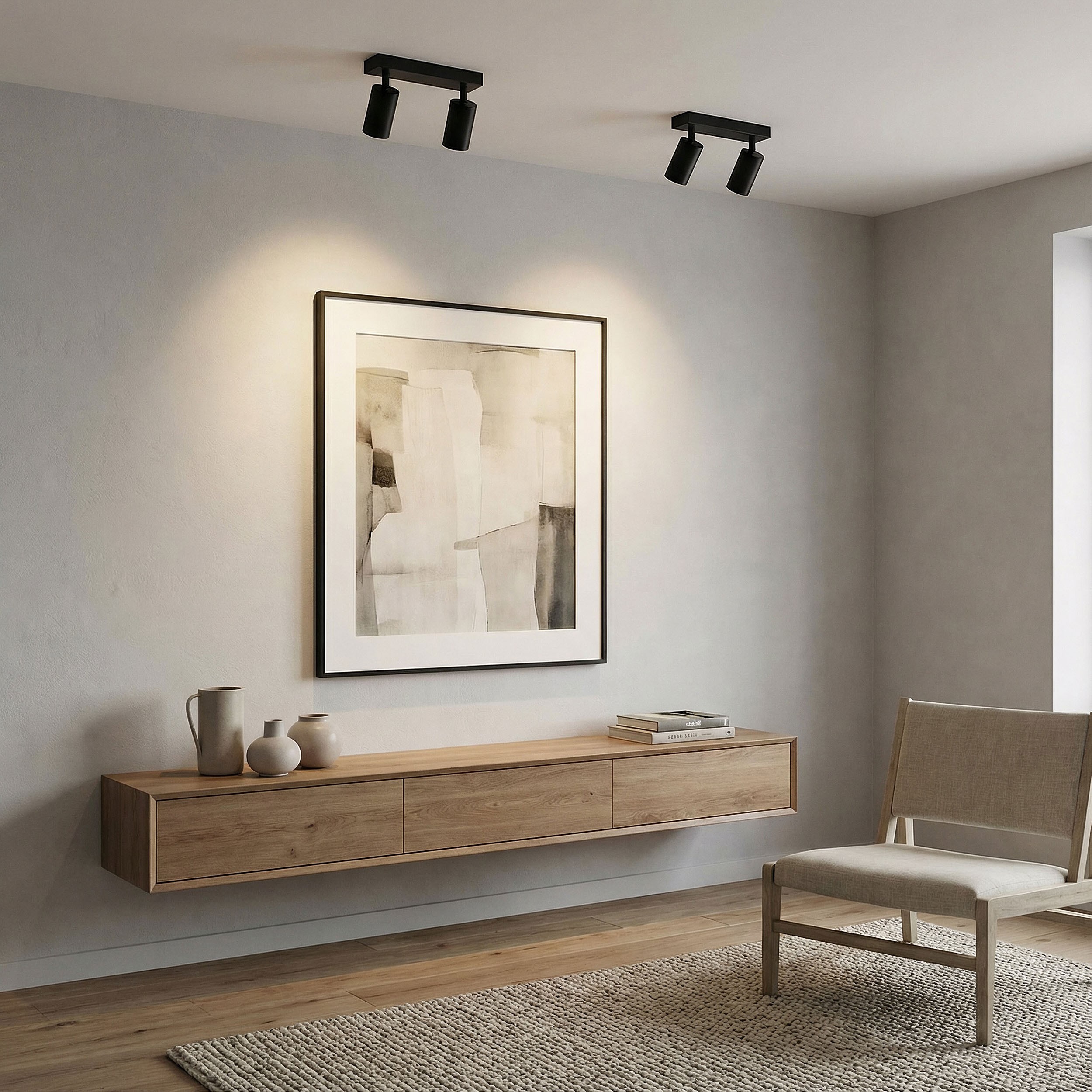 Kolekcja NEO tworzy przemyślaną serię lamp sufitowych - pojedynczych, podwójnych i wielopunktowych - oraz kinkietów z tubami i reflektorami w kolorach czerni i bieli. Wspólnym mianownikiem całej linii jest współczesna forma i funkcjonalność, która pozwala budować światło dopasowane do codziennego stylu życia.