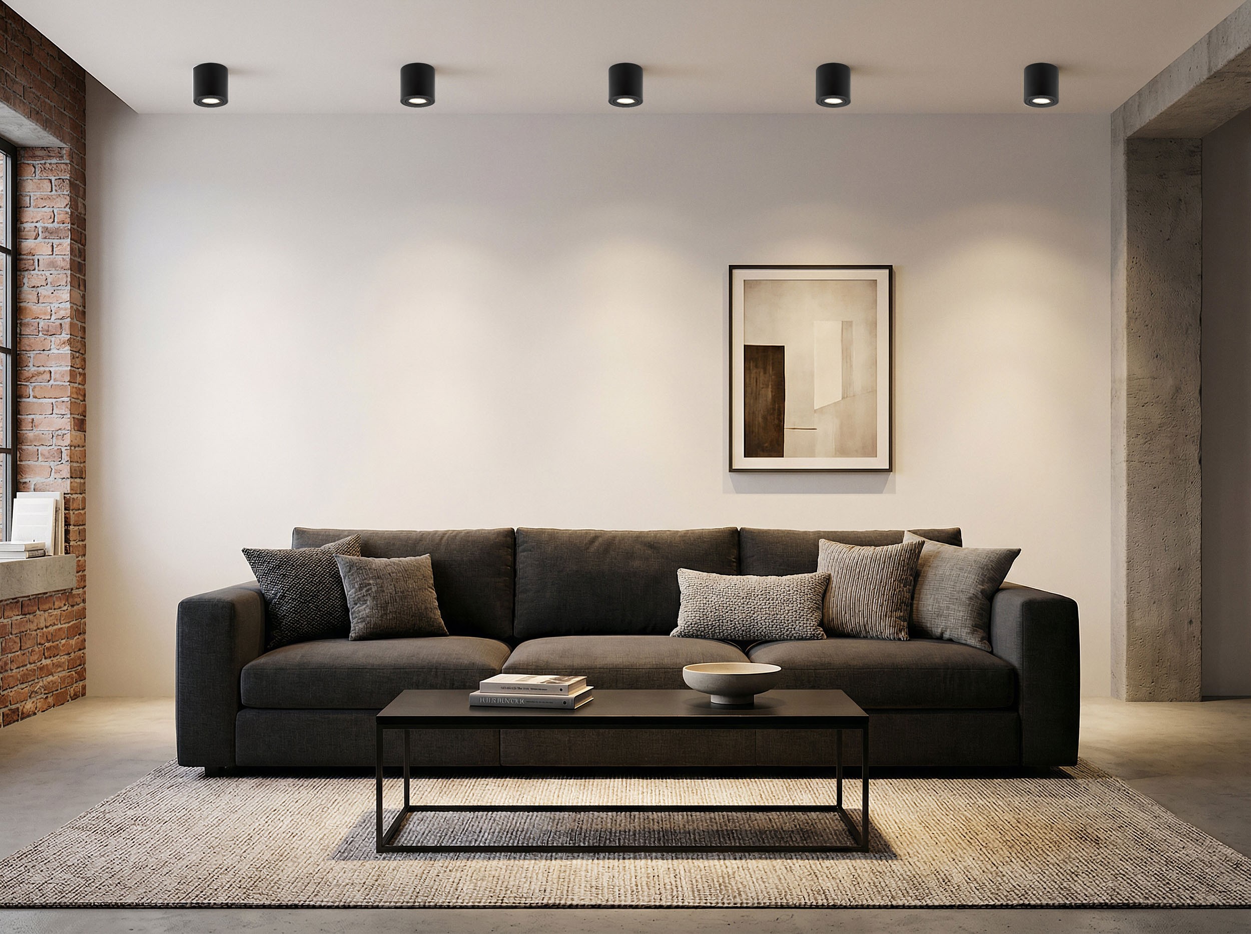 Czarny spot BOLT został zaprojektowana tak, aby łączyć subtelny wygląd z bardzo praktycznym oświetleniem. Jego cylindryczna, czarna forma przylega do sufitu, a punkt światła kieruje uwagę na to, co trzeba podkreślić - ulubione dekoracje, strukturę ściany, strefę łóżka czy domową galerię zdjęć