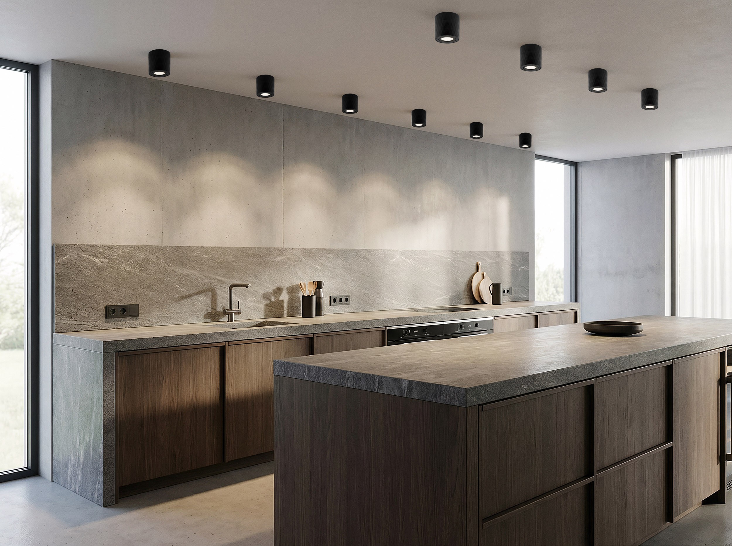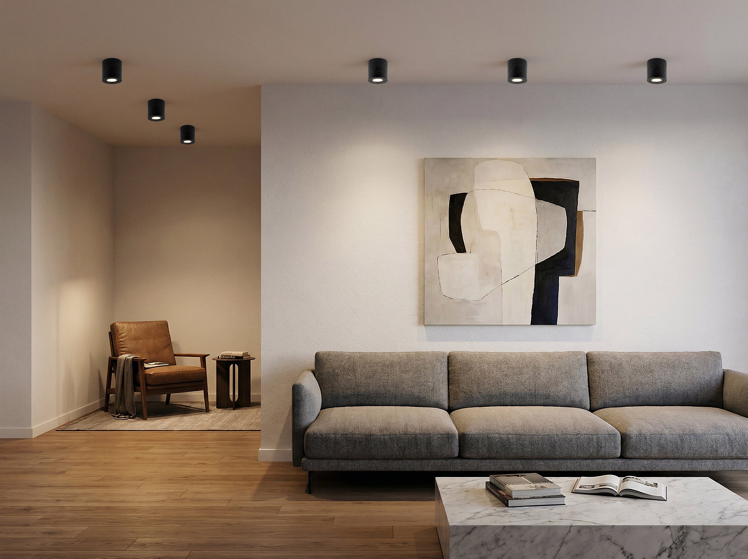 Dzięki czarnej kolorystyce i wyrazistej strukturze oprawa wprowadza do wnętrza subtelną elegancję w nowoczesnym stylu. Można łączyć ją z drewnem, betonem, metalem, szkłem, ciemnymi i jasnymi przestrzeniami, tworząc zarówno bardziej wyraziste, jak i minimalistyczne kompozycje. Model sprawdza się w nowoczesnych mieszkaniach, apartamentach w stylu modern i wnętrzach loft.