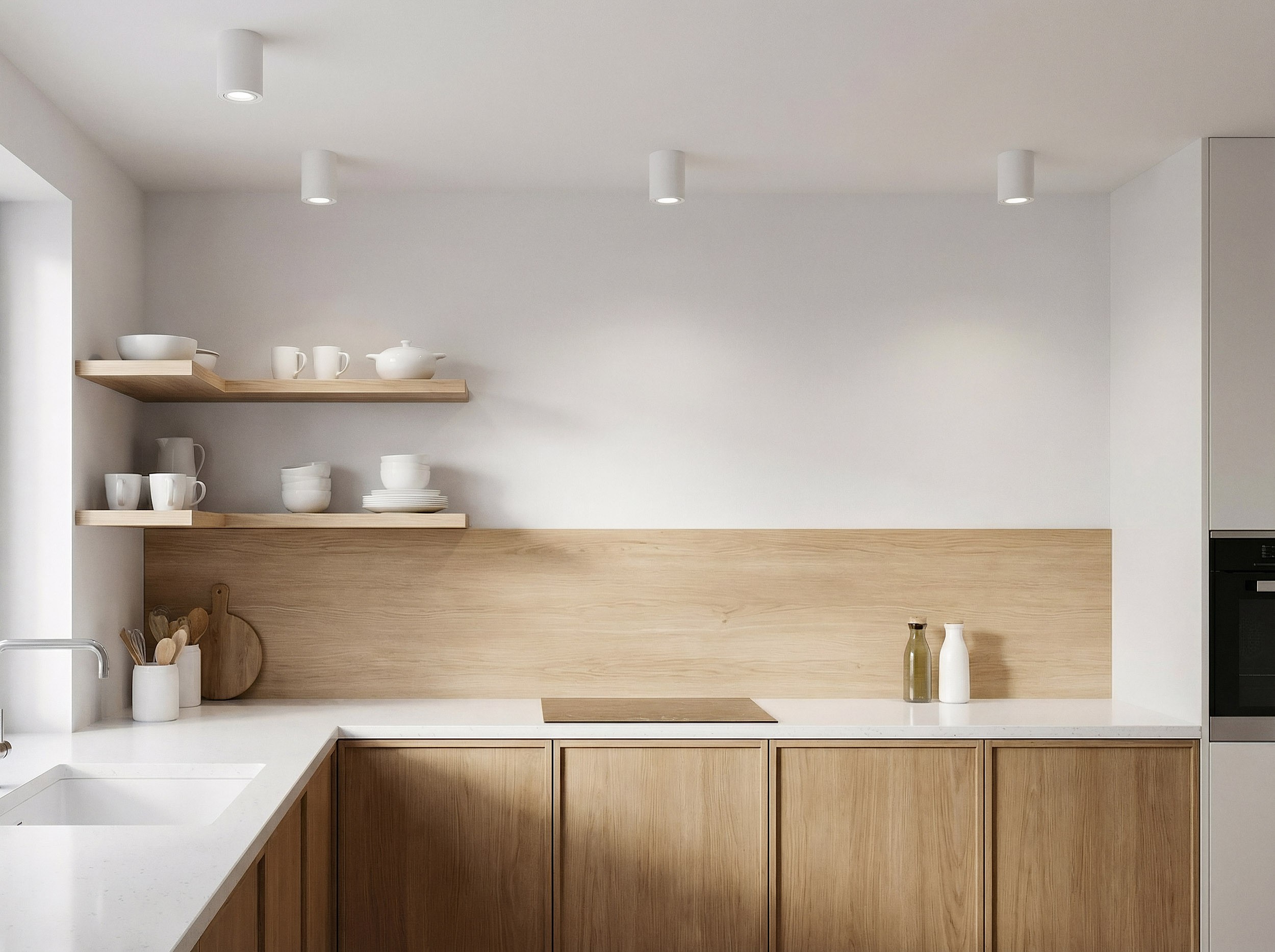 Biały spot NATI zapewnia regulację punktu światła, przez co umożliwia skierowanie strumienia tam, gdzie jest potrzebny w danym momencie: na przestrzeń roboczą, element dekoracji, stolik czy strefę nocną przy łóżku. Minimalistyczna forma tuby doskonale sprawdza się w układach kilku opraw, tworząc równy rytm światła w korytarzu, nad wyspą kuchenną czy wzdłuż pokoju dziennego. Model oferuje wygodne oświetlenie wieczorne i użytkowe w ciągu dnia.