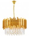 Złota lampa wisząca FERA D40 składa się z dekoracyjnych, pionowych modułów, które tworzą efekt trójwymiarowej kompozycji wokół centralnego źródła światła. Pod nimi znajdują się długie, transparentne kryształowe elementy, które odbijają światło i dodają wnętrzu eleganckiego charakteru. To nowoczesny żyrandol, który jest jak biżuteria dla pomieszczenia -subtelnie błyszczy, a jednocześnie podkreśla styl aranżacji.
