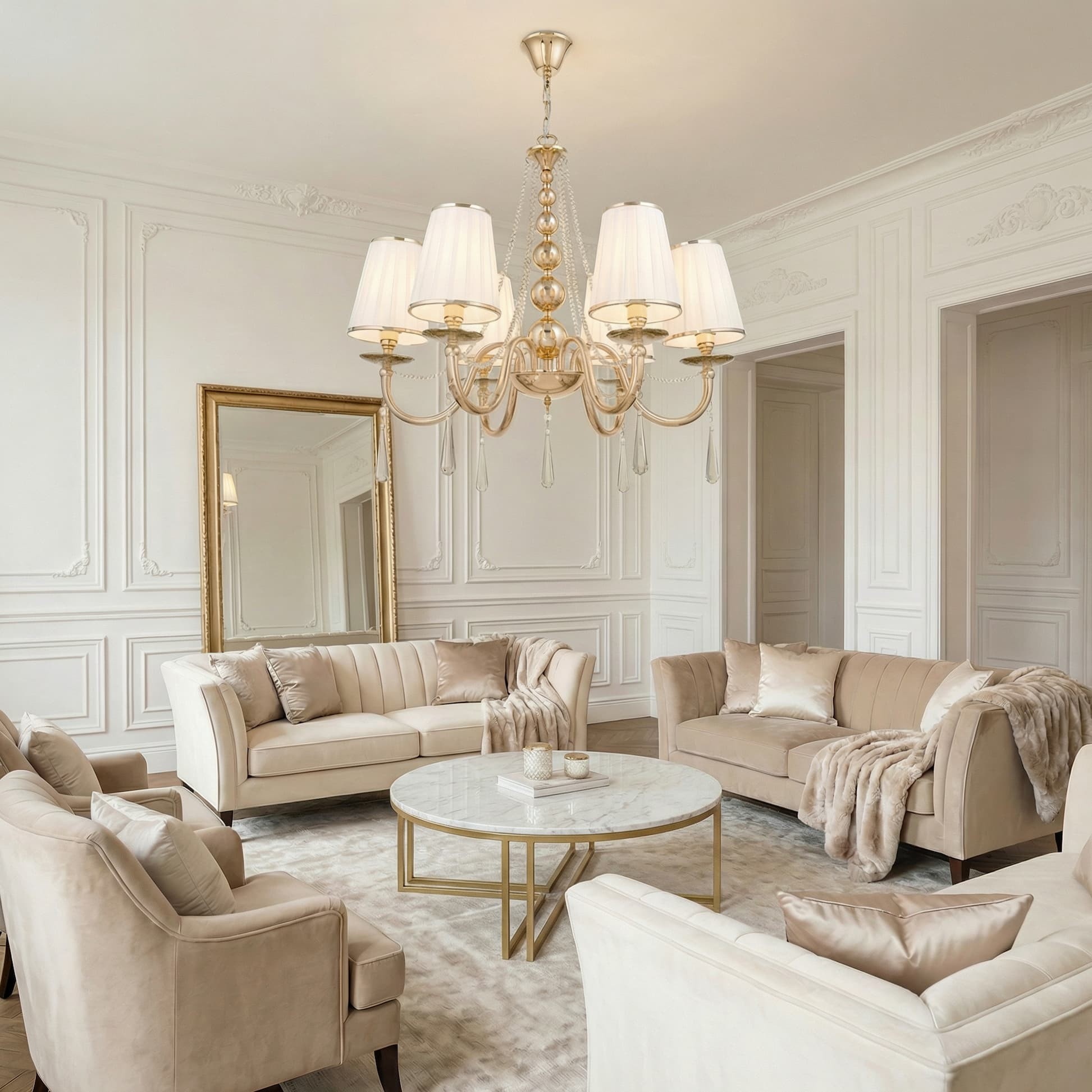 | Materiał lampy | metal, kryształ, tkanina |