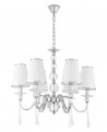 Seria FEDERRICA to kryształowe lampy o klasycznych kształtach, wykonane z metalu pokrytego chromem. Główną wartością serii FEDERRICA jest ekskluzywność wyrażana poprzez nietuzinkowe kształty, luksusowe materiały i wyrafinowane dekoracyjne detale. Srebrne okucia tworzą idealną symbiozę z ozdobnymi, ekskluzywnymi kryształami oraz efektownym, finezyjnie ukształtowanym szkłem. Ten typ oświetlenia nadaje pomieszczeniom niesamowitego klimatu. Wprowadza do nich nutkę tajemniczości i romantyzmu, zapewnia im szyk na najwyższym poziomie, pasuje i do wystawnych salonów, i do eleganckich jadalni, jednak najznakomiciej wygląda w przestronnych, wręcz pałacowych sypialniach. Żyrandol zbudowany z sześciu białych kloszy będzie doskonałym wyborem dla klasycznych salonów, pełnych blasku i subtelności sypialni oraz wszelkich aranżacji, w których dominuje elegancja i dbałość o detale, które kreują klimat we wnętrzach. Wykonany z trwałego metalu, dodatkowo pokrytego chromem, nastrojowych kryształowych i gatunkowego szkła.