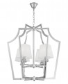W kolekcji MONTERO na pierwszy plan wysuwa się industrialny styl połączony z nowoczesnością, który dzięki czterem źródłom światła oddaje wnętrzu klimatyczne, umiarkowane światło. Abażury osłonięte są trwałą, wysokogatunkową, białą tkaniną i umieszczone są na metalowym szkielecie w kolorze chromu, którego ramiona układają się w intrygujący kształt zewnętrzny. Wewnątrz mieści on ramiona dźwigające abażury, pod którymi znajdują się szlachetne kryształy o nierównomiernym kształcie, będące wisienką na torcie dekoracji lampy wiszącej MONTERO.