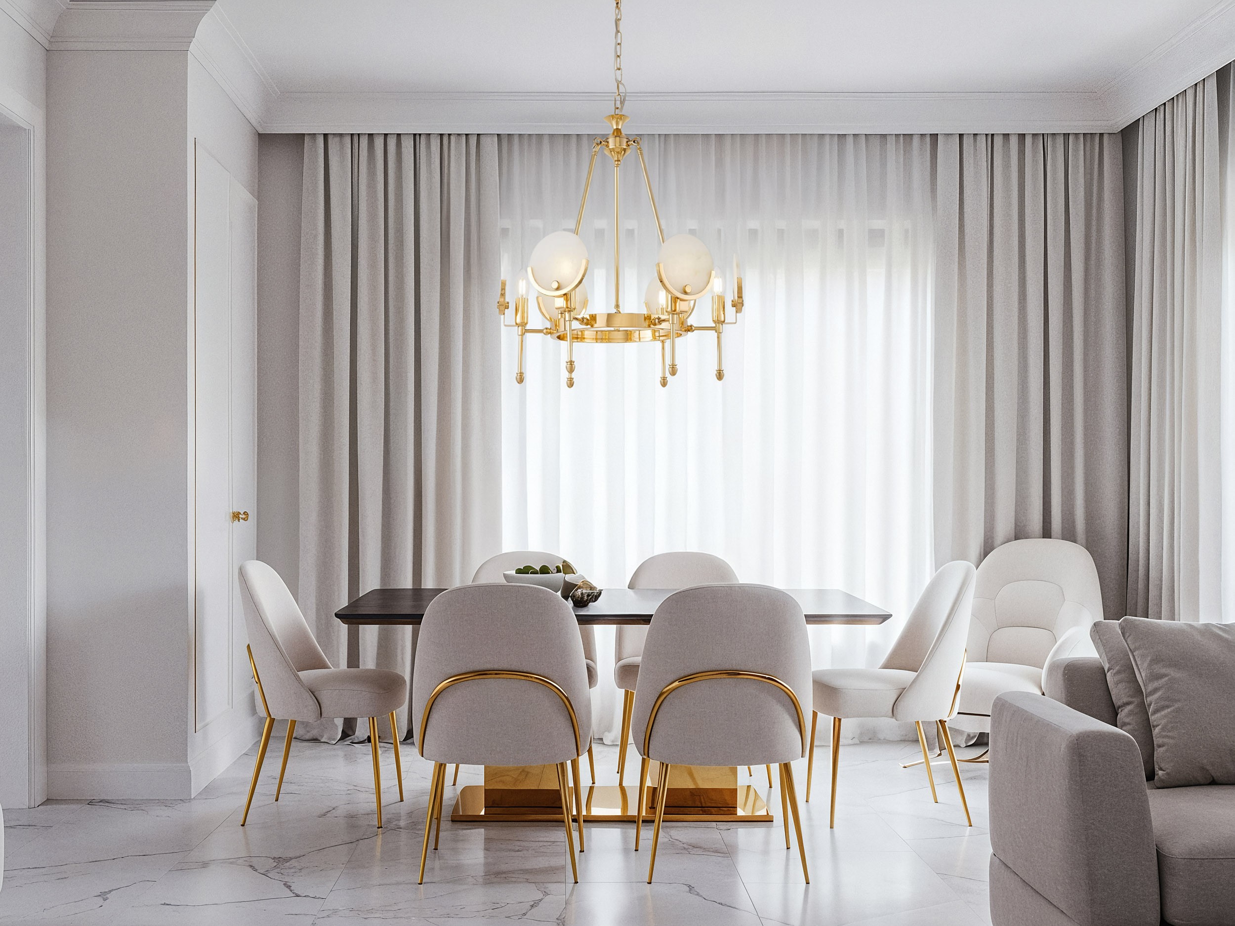 Nowoczesny styl żyrandola MONTEGO doskonale został ujęty w jej bryle oraz kolorystyce. Lśniąca, estetycznie wykonana złota oprawa o interesującym kształcie świetnie łączy się z wysokiej klasy kryształowymi dekoracjami sześciu szklanych kloszy. Żyrandol ten, dzięki swojej eleganckiej ozdobności, doskonale wpisze się w klimat modnie urządzonego salonu lub jadalni.