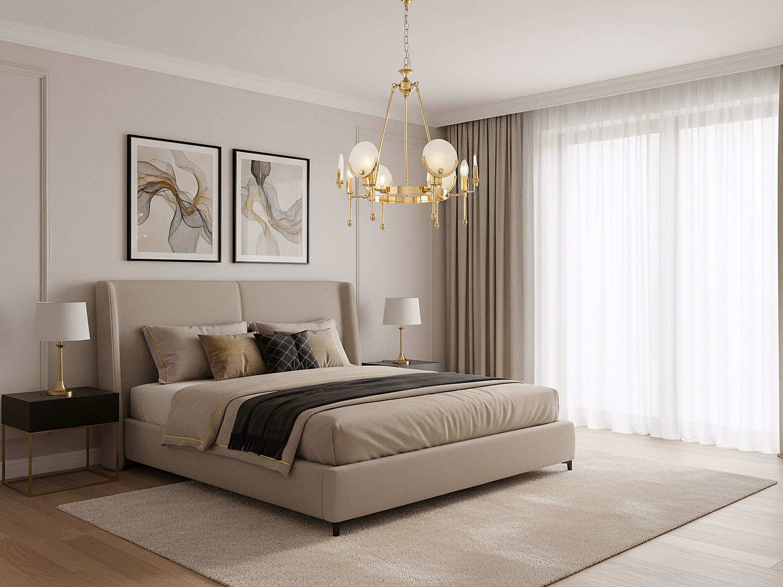 Żyrandol z serii MOTEGO jest przykładem nowoczesnego oświetlenia, które zachwyca całą konstrukcją oraz każdym detalem z osobna. Złota oprawa okrągłej ramy żyrandola w niezwykły sposób udekoruje każde pomieszczenie, w którym się znajdzie. Podtrzymywana jest przy pomocy trzech cienkich pręcików zakończonych złotą dekoracją z metalu. Żyrandol posiada sześć szklanych kloszy w kształcie płomienia świec, ozdobionych od przodu płytką z kryształu oprawioną w złotą półobręcz.