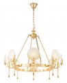 Zachwycający projekt kolekcji MOTNEGO zachęca miłośników niespotykanych form, to zaczerpnięcia z niego inspiracji. Ciekawa bryła żyrandola w połączeniu z detalami wykonanymi z wysokiej jakości materiałów genialnie obrazuje współczesne możliwości aranżacji wnętrz. Lampa składa się z wielkiej, metalowej obręczy przytwierdzonej do łańcucha za pomocą metalowych pręcików. Minimalistyczne ramiona zwieńczone są szklanymi kloszami i kryształowymi, okrągłymi dekoracjami. Całość wykonana została w ciepłym, złotym kolorze.